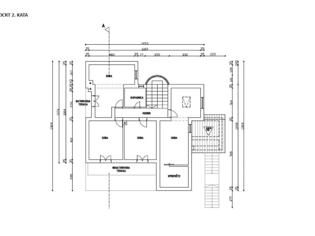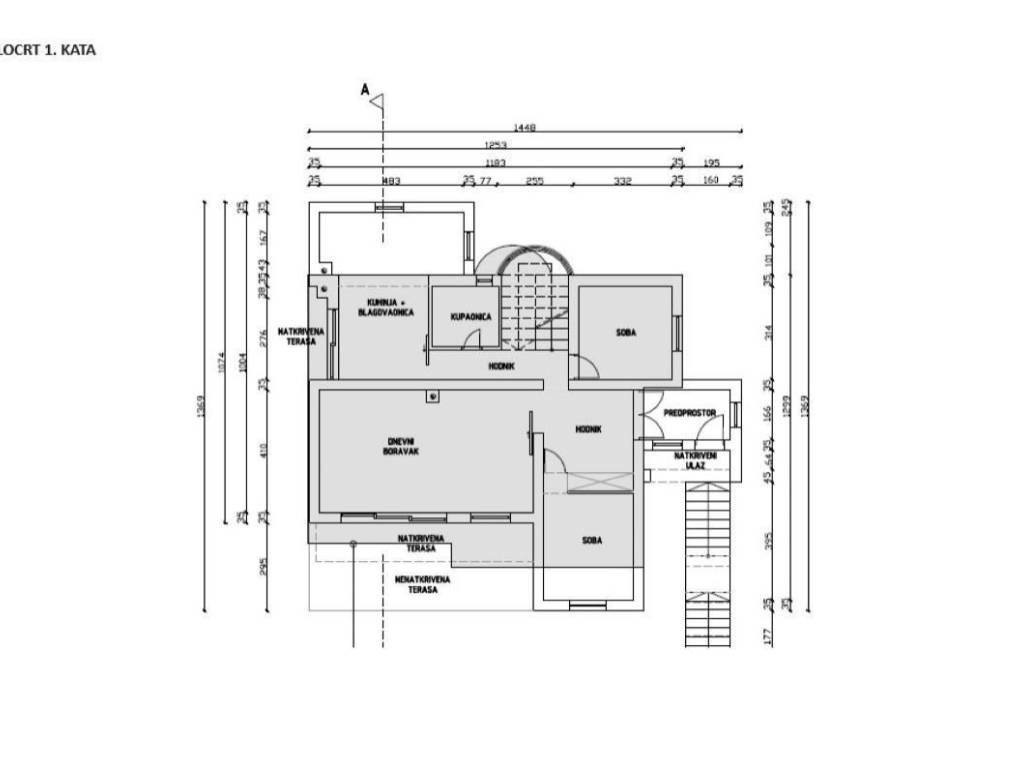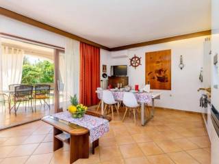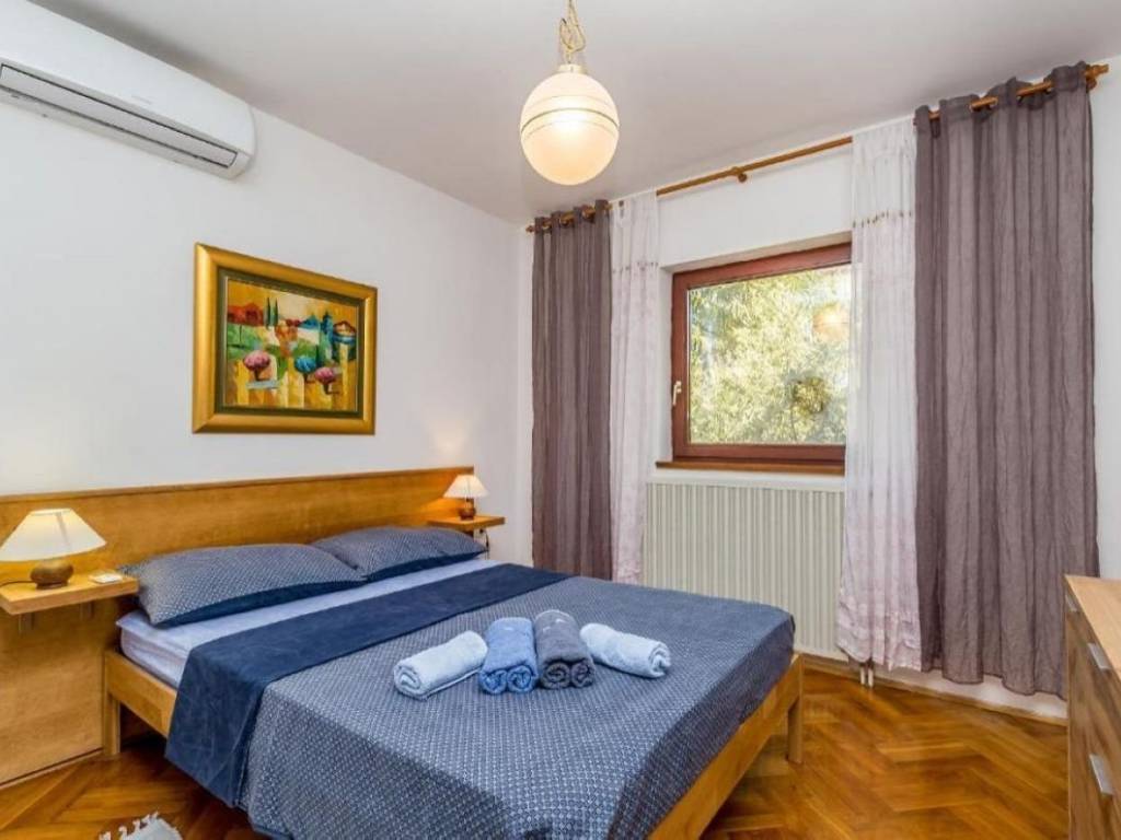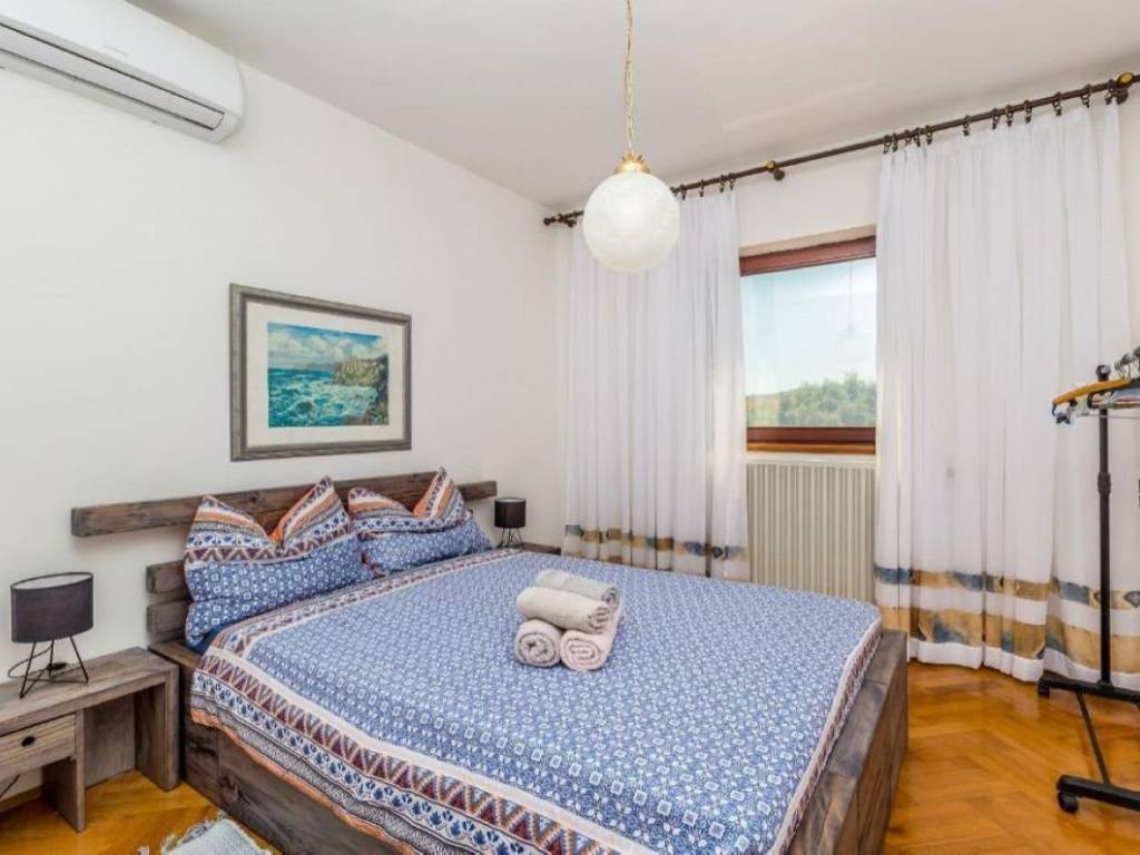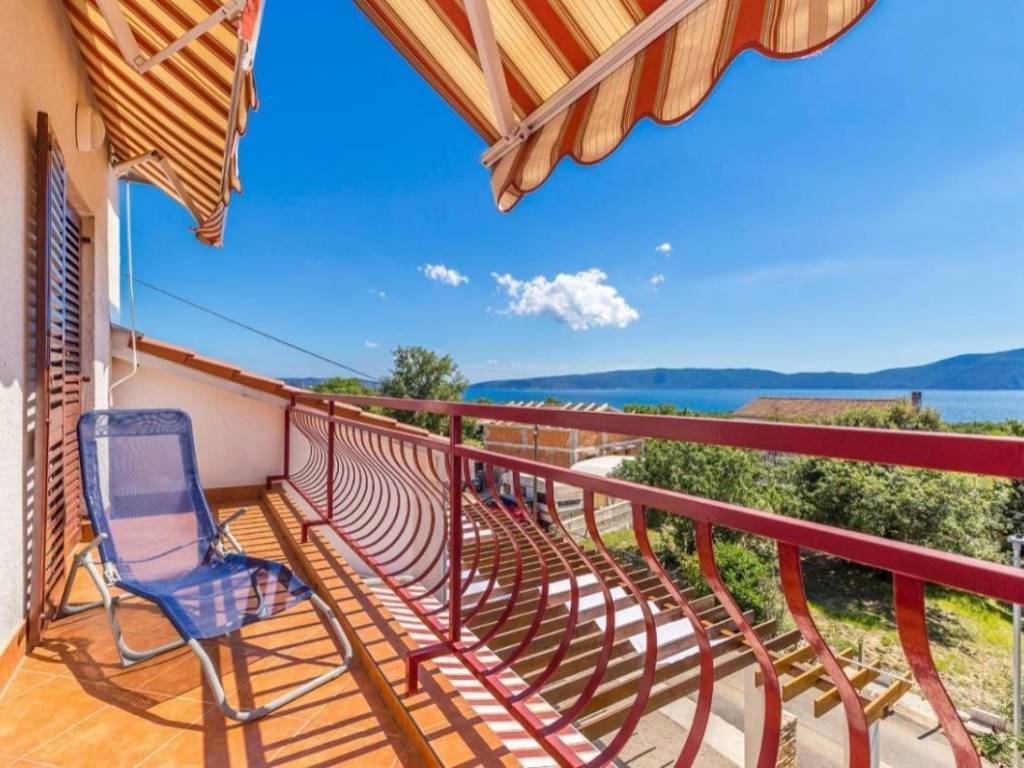 Otok Krk, grad Krk, šire područje, prodaja samostojeće kuće površine 405 m2, s tri apartmana i pogledom na more, 600 m od plaže. Kuća se sastoji od prizemlja s dvosobnim apartmanom površine 60 m2 i studio apartmanom površine 22 m2 s vlastitim terasama te prvog i drugog kata s dvoetažnim apartmanom površine 190 m2. Kvalitetna gradnja i oprema, klimatizacija, centralno grijanje, solarni paneli, vanjski kamin, više parkirnih mjesta.