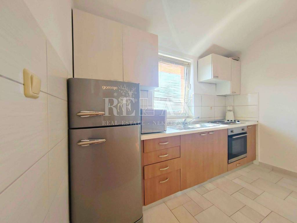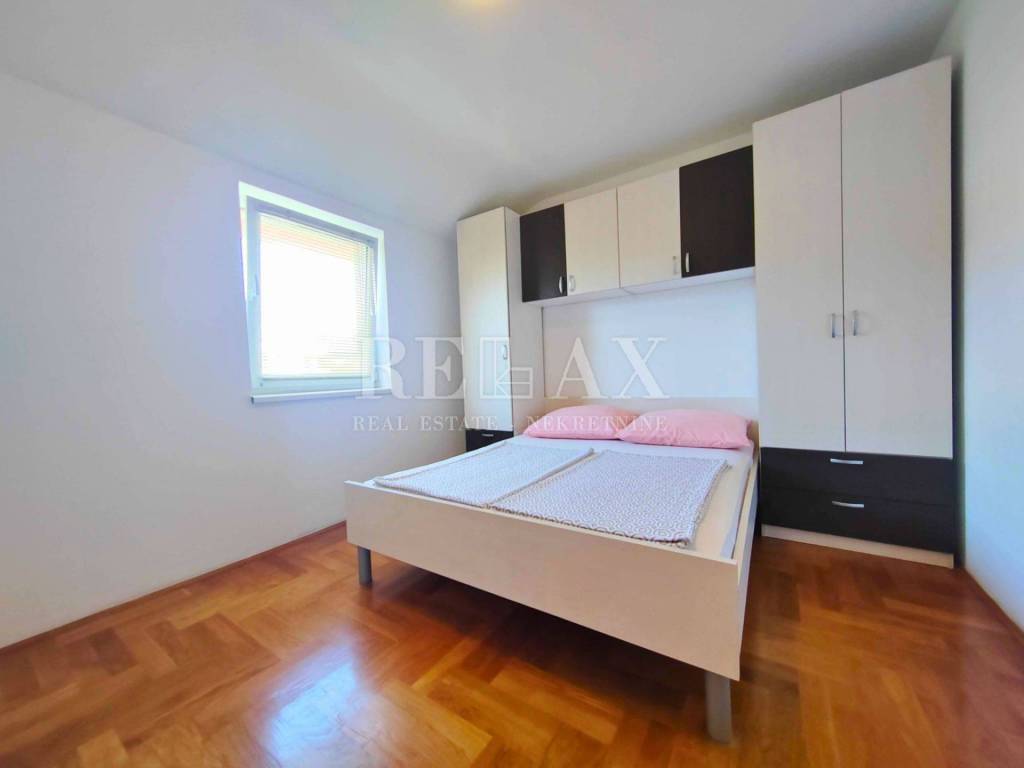 Stan se nalazi na drugom katu, te je izgrađen 2013. godine, ukupne stambene površine 61 m2. Sastoji se od dnevnog boravka s kuhinjom i blagovaonicom, dvije spavaće sobe, hodnika, kupaonice i balkona površine 4 m2. Stan je orijentiran prema jugozapadu, što osigurava obilje prirodnog svjetla tijekom dana. Potpuno je namješten i opremljen klima uređajem.