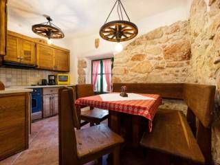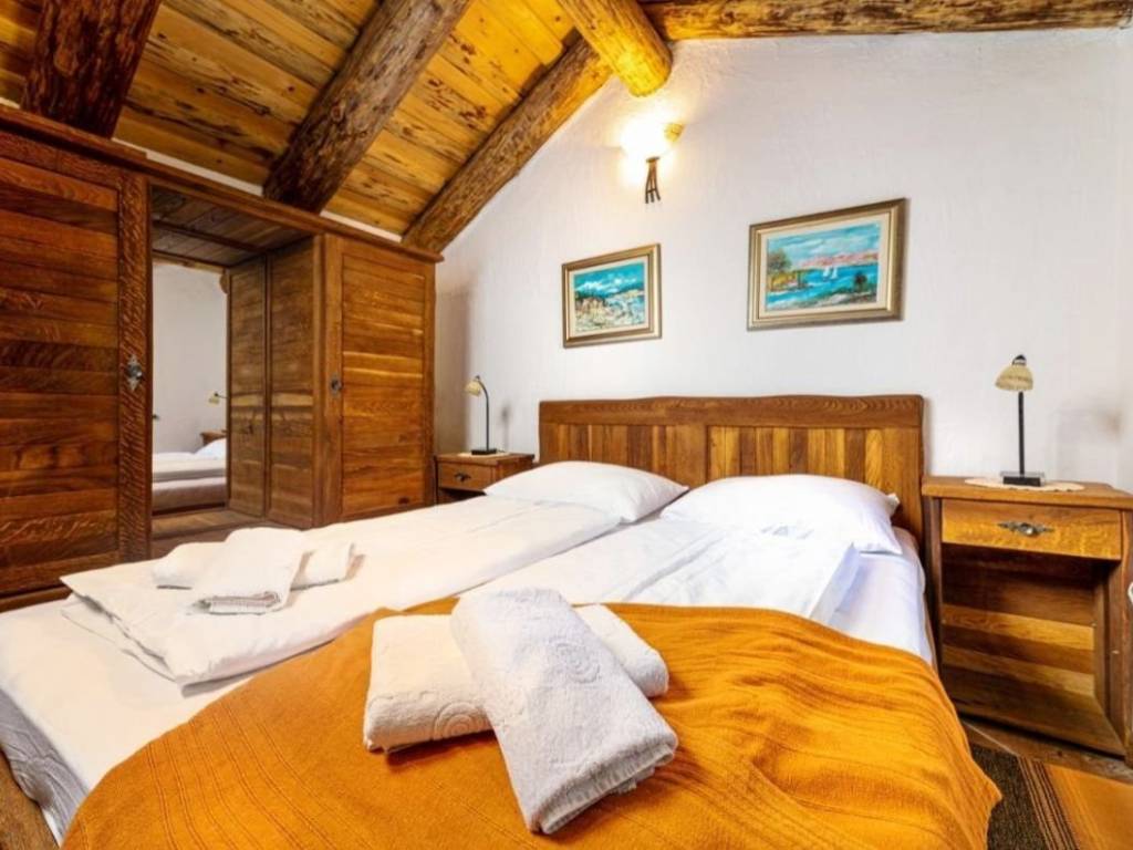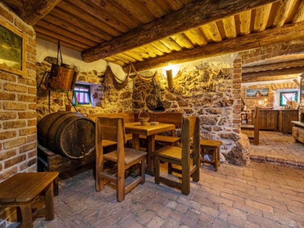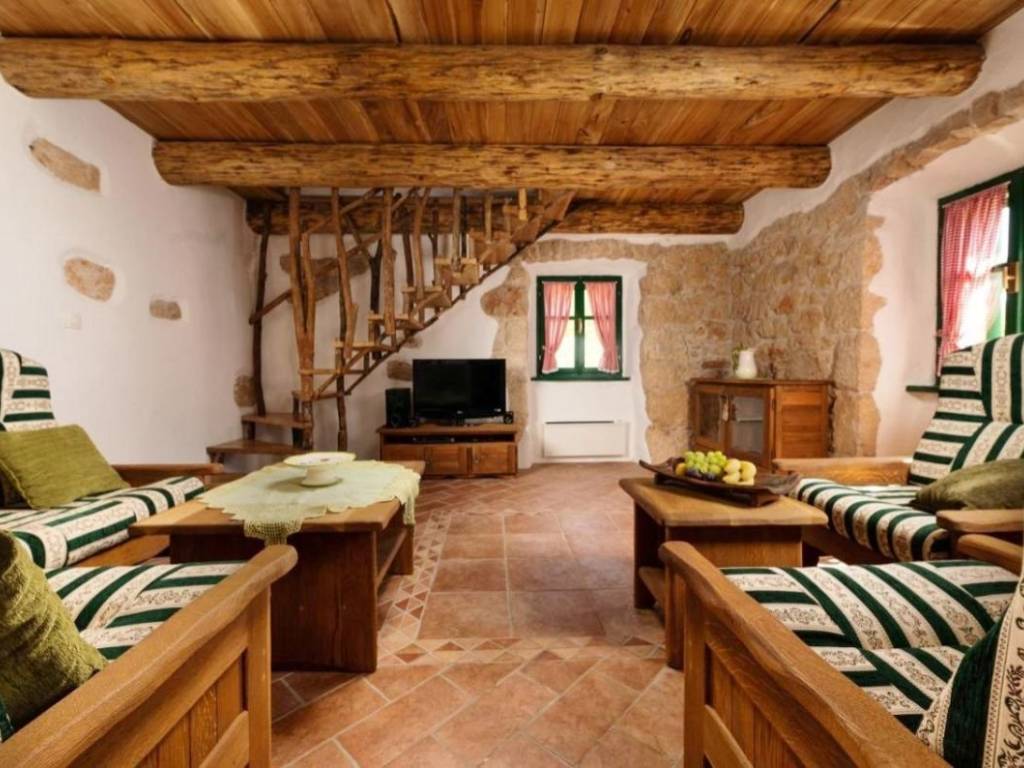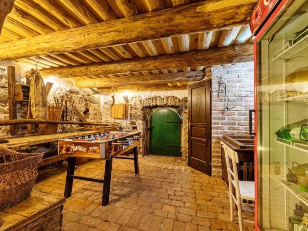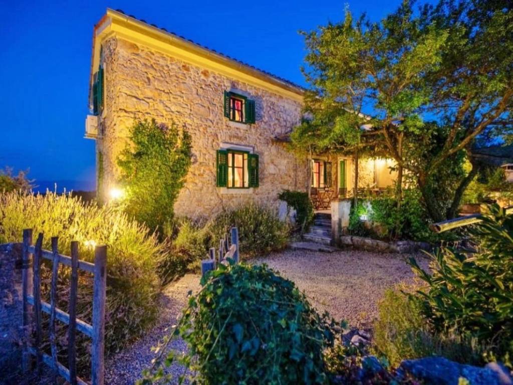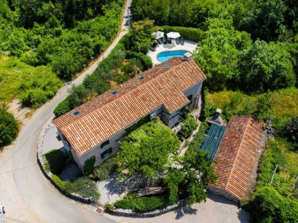 Otok Krk, Dobrinj, šire područje, prodaja uređene stare kamene kuće površine 225 m2, s bazenom i uređenom okućnicom površine 800 m2, na mirnoj lokaciji, 3000 m od mora. Kuća se sastoji od podruma s prostorijom za druženje, prizemlja s dnevnom sobom, kuhinjom, blagovaonom, toaletom i terasom te prvog kata s pet spavaćih soba i tri kupaonice. PVC stolarija, klimatizacija, bočalište, vanjski kamin, šest parkirnih mjesta.