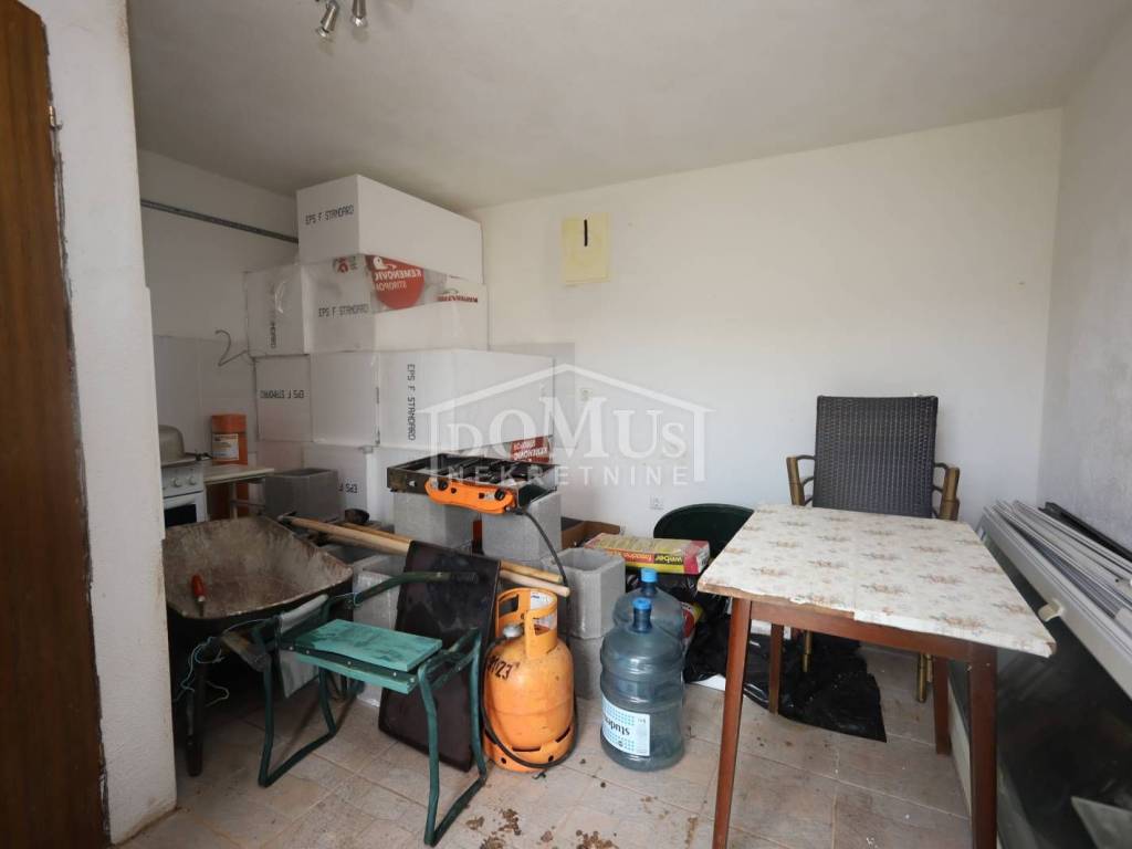 Sovlje, 1500 m udaljeno od naselja, nedovršena samostojeća jednostavna kuća stambene površine cca 65 m2 u suterenu sa prohodnim ravnim krovom na parceli površine 1.798 m2. Kuća je legalizirana, ima septičku jamu ali nema struju ni vodu. Javna infrastruktura, struja i voda se nalazi cca. 200 m od parcele. Parcela ima makadamski prilazni put koji omogućuje pristup osobnim vozilom. Teren je djelomično očišćen, ima blagi nagib, a na terenu je nisko raslinje i desetak stabala maslina. Udaljenost do centra Sovlja kao i do mora iznosi 1.500 m.
