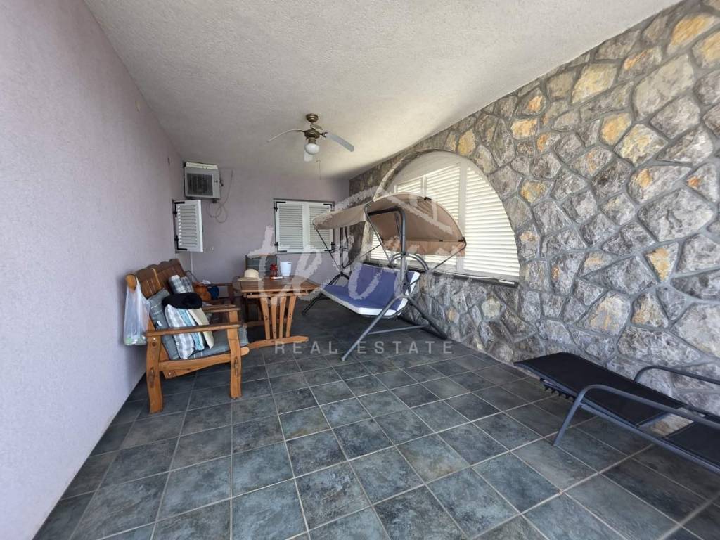 Prodajemo prostranu kuću sa četiri stambene jedinice na vrhunskoj lokaciji na samo 50m od mora. Kuća je okružena velikim terasama sa kojih se pruža prekrasan pogled na more. Nekiretnina se sastoji od suterena, prizemlja i kata. U suterenu se nalazi jednosobni stan od 35m2 te dodatni prostor, koji je moguće urediti u studio apartman. Ispred apartmana je vrt zasađen mediteranskim biljem i natkirvena terasa. U prizemlju se nalaze dva stana, jedan sa dvije spavaće sobe ukupne površine 50m2 te drugi garsonjera površine 35m2. Oba stana povezana su natkrivenom terasom. Također u prizemlju unutar okućnice nalazi se još jedna natrkivena terasa sa roštiljem i kotlovnica. Na prvoj etaži je stan koji se sastoji od ulaznog prostora, hodnika, dvije spavaće sobe, dnevnog boravka, kuhinje, kupaone te sa pripadajućim terasama ima 163m2. Unutar okućnice nalaze se četiri parkirna mjesta. Okućnica je lijepa i održavana te osigurava privatnost, a mnogo zelenila daje nam pririodni hlad. Nekretnina je u potpunosti namještena i klimatizirana i kao takva se i prodaje te je spremna za useljenje i turisitički najam.