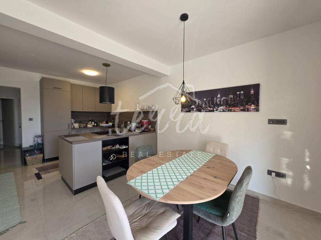 na prostranu terasu (od koje je 15,35 m² natkriveno, a 50 m² nenatkriveno) idealnu za druženja i opuštanje, dvije spavaće sobe, moderno uređene kupaonice i hodnika koji povezuje sve prostorije u skladnu cjelinu. Stan se prodaje potpuno namješten, klimatiziran i opremljen podnim grijanjem, što osigurava ugodnu temperaturu tijekom cijele godine. Unutar privatne okućnice nalaze se parkirna mjesta za više vozila, što je dodatna pogodnost za vlasnike i goste. Ovo je idealan izbor za one koji traže miran obiteljski dom, vikend oazu ili odmor u ljetnim mjesecima.