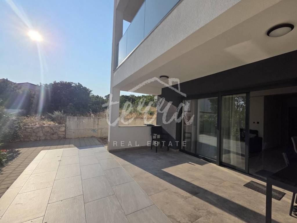 Prodajemo u mirnom i novom dijelu grada prostran i moderan stan u prizemlju novogradnje, s vlastitom okućnicom koja pruža privatnost i udobnost. Stan je projektiran i uređen s posebnom pažnjom na funkcionalnost i estetiku te se sastoji od kuhinje s blagovaonicom i prostranog dnevnog boravka u open space konceptu, iz kojeg se izlazi
