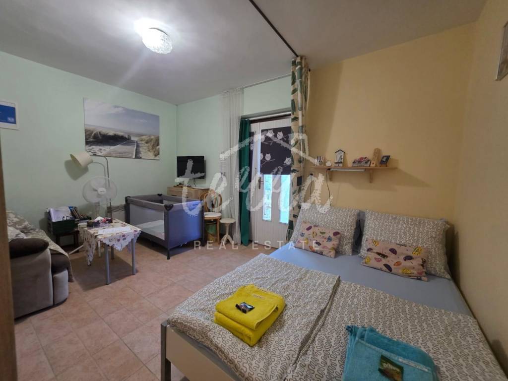 U prizemlju se nalazi studio apartman s direktnim izlazom na prostranu terasu i prekrasno uređenu okućnicu, idealnu za opuštanje i boravak na otvorenom. Na prvom i drugom katu smješteni su apartmani s jednom spavaćom sobom, svaki s vlastitim balkonom i pogledom na zelenilo.