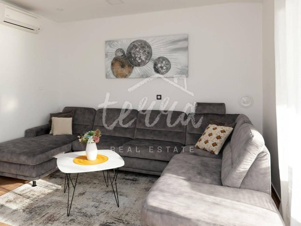 – 2. etaža: dnevni boravak, master spavaća soba (krevet 200×200) s vlastitom kupaonicom, terasa.