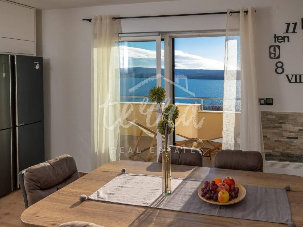 Prodaje se moderan i prostran dvoetažni stan u mirnom dijelu Jadranova, idealan za kupce koji traže udobnost, funkcionalnost i otvoren pogled na more. Stan se nalazi na drugom katu kvalitetne stambene zgrade te ima dvije velike terase s panoramskim pogledom na Kvarnerski zaljev. Zgrada ima video nadzor a ispred zgrade nalazi se zeleni pojas, područje na kojem nema gradnje, što prostoru daje dodatnu privatnost i mir.