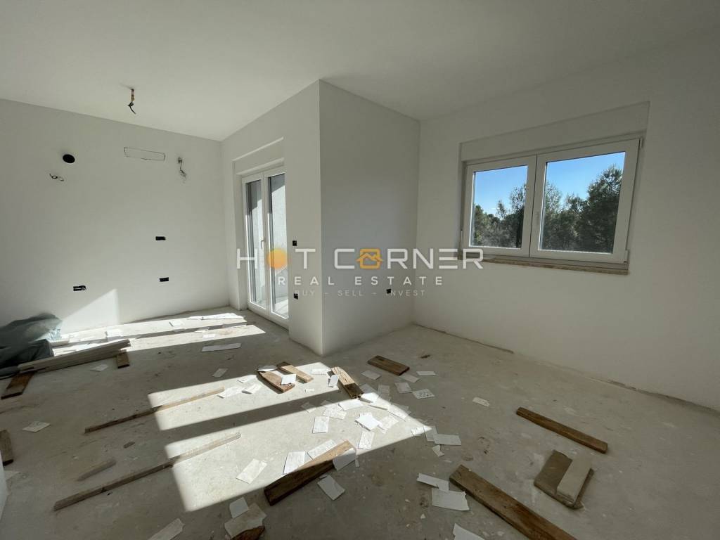 Sastoji se od ulaznog hodnika, kupaonice, 2 spavaće sobe, manjeg spremišta, terase,