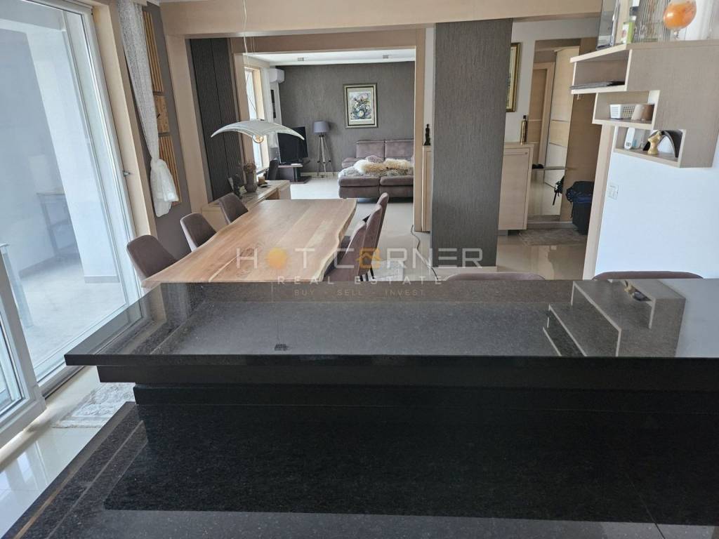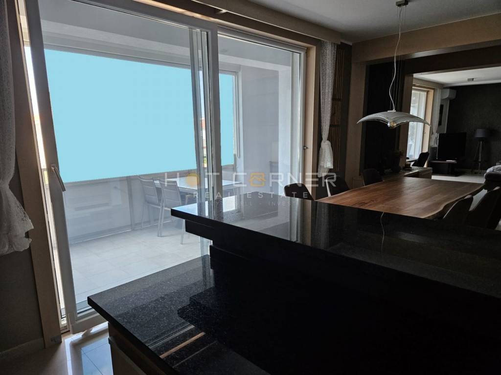 površine 60 m2, s velikim staklenim stijenama i izlazom na terasu od 23 m2 (djelomičan pogled na more).