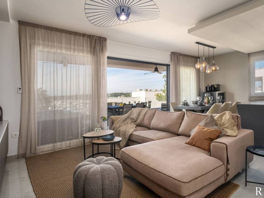 Smješten u samom srcu slikovitog Novigrada, ovaj stan predstavlja savršen spoj modernog luksuza, udobnosti i sofisticiranog dizajna. Ovaj elegantno uređen stan nalazi se na drugom katu kvalitetno izgrađene zgrade s liftom, a njegova terasa pruža spektakularan pogled na novigradsku marinu, jahte i jedrilice koje spokojno plutaju u luci. Uživajte u privatnom jacuzziju pod vedrim nebom ili se opustite uz knjigu u jednom od dizajnerskih naslonjača terasa ovog apartmana uistinu je jedna od najljepših u gradu. Prostrani open space dnevni prostor uključuje elegantni dnevni boravak s velikim pametnim televizorom, modernu kuhinju s otokom i potpuno opremljenu blagovaonicu. Stan raspolaže sa tri stilski uređene spavaće sobe te dvije kupaonice. Pripada mu spremište u podrumu i parkirno mjesto.