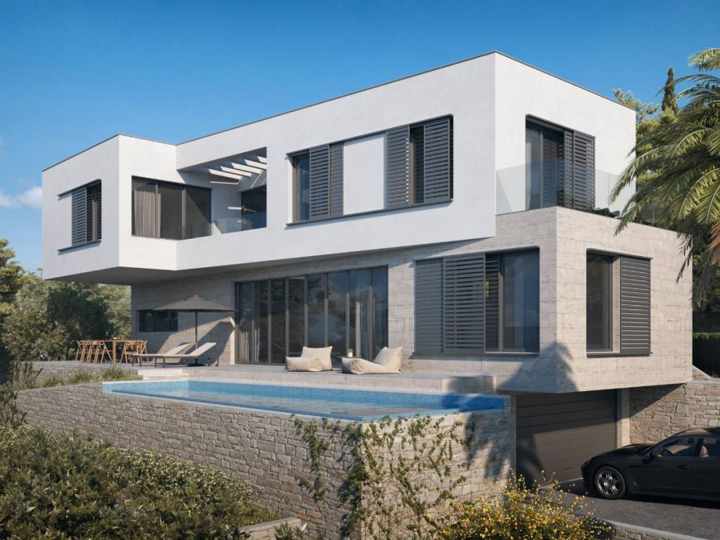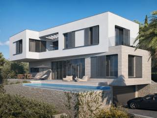 U skladu s modernom arhitekturom vile koriste se samo najkvalitetniji materijali, kao što su keramičke pločice velikog formata, čvrsti parketi i unutarnja vrata bez okvira, što visoke prostorije čini još učinkovitijima.U podrumu ove jedinstvene vile na raspolaganju vam je još jedna soba koja može savršeno poslužiti kao teretana. Tu je i garaža za 2 automobila.