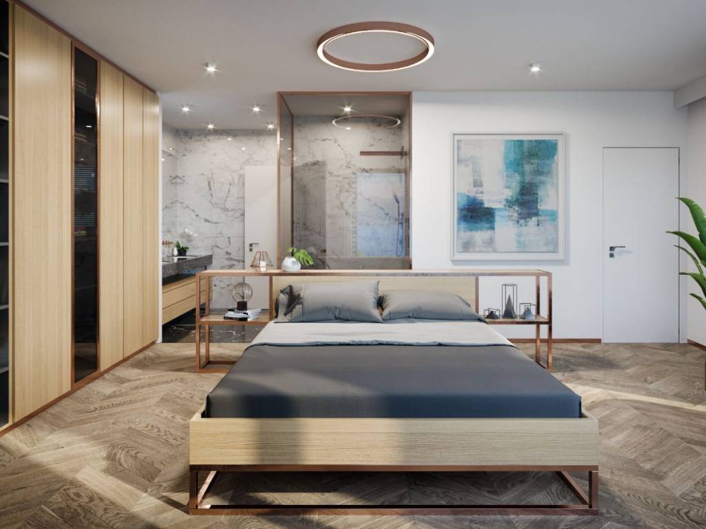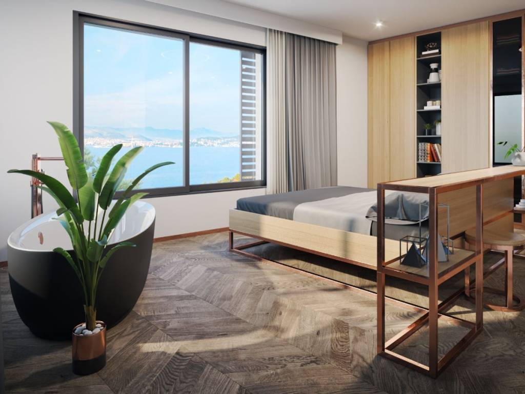 Optimalno dizajnirane spavaće sobe na gornjem katu još jednom impresioniraju panoramskim pogledom koji oduzima dah zahvaljujući ostalim terasama i prostranim prozorskim frontama.