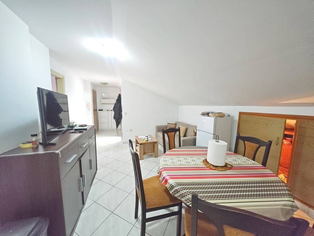 Prema vrsti nekretnine, ovo je jednoetažni apartman srednje veličine. U zgradi vrlo dobre gradnje, apartman je pozicioniran u visokom potkrovlju. Površina ovog apartmana iznosi ukupno 56 m2. Na navedenoj površini se nalaze dnevni boravak i kuhinja s blagovaonicom, spavaća soba, kupaonica i lođa. Nekretnina očuvane unutrašnjosti je opremljena setom vrlo dobre tehničke opreme i kvalitetnim komadima namještaja.