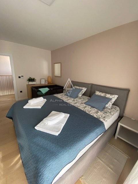 Interijer vile je moderno opremljen sa visokokvalitetnim namještajem i suvremenom opremom. Jednostavno je uređena sa stilski odabranim detaljima i toplim bojama koje daju dodatnu udobnost prostoru. Staklene stijene omogućavaju puno prirodne svijetlosti i prozračnosti.