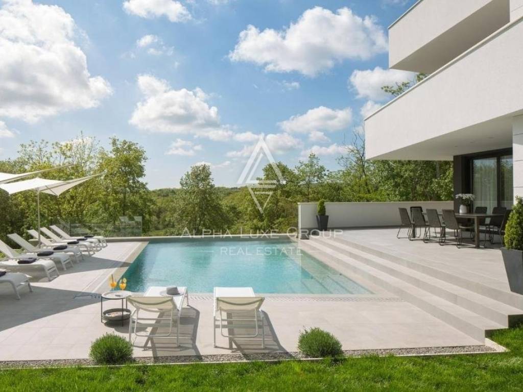 Moderna vila ima 433 m2 stambene površine i 3400 m2 okućnice. Vila ima vrlo urbani izgled i uzbudljiv dizajn, sa svojim prekrasnim eksterijerom i interijerom. Vila je smještena usred vegetacije i pruža prekrasan neprekidan pogled na ovdašnji krajolik, kojim će se oduševiti svaki posjetitelj.