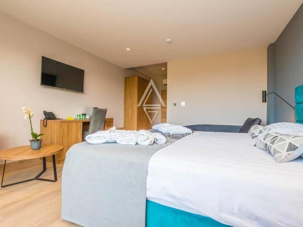 S 33 parking mjesta, 2 stanice za punjenje električnih vozila i parkingom za autobuse, hotel se prostire na 2 kata osim prizemlja, pokrivajući ukupnu površinu od 6.215 m², od čega je 2.300 m² stambeni objekt. Ova nekretnina predstavlja odličnu investicijsku priliku, s većinom soba koje imaju pogled na more. Dodatna investicijska mogućnost: građevinsko zemljište ispred hotela, sa pristupnim putem i potrebnom infrastrukturom, površine 2700 m2, turističke namjene, za gradnju vila za odmor.