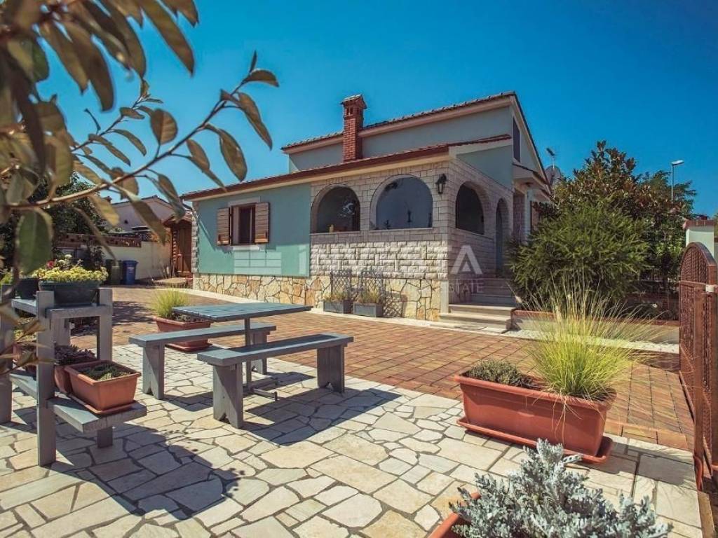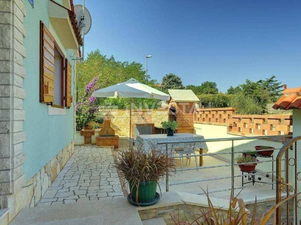 U popločenom dijelu dvorišta se nalazi vanjski roštilj te natkriveni dio sa prostranim stolom za druženje. S druge strane kuće je popločeni parking za smještaj više vozila.