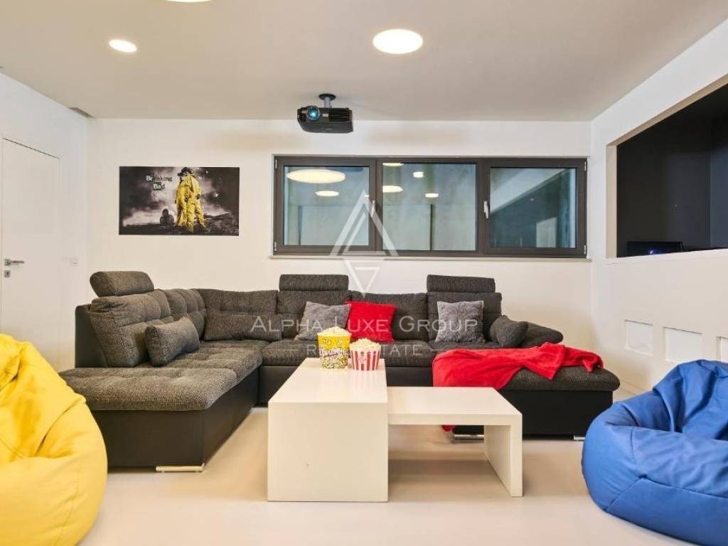 Svaki aspekt ove vile pažljivo je izrađen za udobnost i luksuz, opremljen pametnim sustavom za grijanje i hlađenje, klima uređajem, podnim grijanjem i kaminom u dnevnom boravku. Kuhinja visoke kvalitete Gaggenau potpuna je s elementima s funkcijom dodira. Kupaonice podsjećaju na wellness oaze s tuševima visokog protoka, LED rasvjetom i dizajnerskim grijanim ručnicima. Četiri parkirna mjesta u podrumskoj garaži dodaju na praktičnosti.
