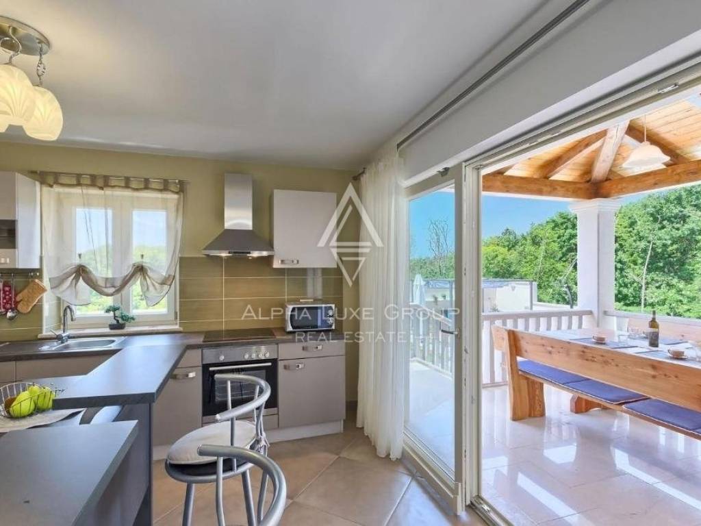 Vila se prostire na 230 m² i elegantno kombinira udobnost i funkcionalnost. Prvi kat sadrži četiri spavaće sobe, od kojih jedna ima vlastitu kupaonicu i privatni balkon, dok ostale tri imaju vlastite kupaonice s tušem. Na prizemlju se nalaze prostrani dnevni boravak, blagovaonica, moderna kuhinja, kupaonica i spremište. Vanjski prostor uključuje bazen i pažljivo uređenu zonu za opuštanje.