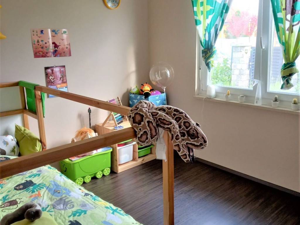PROSTORIJE KUĆE: ulazni hodnik, dnevni boravak  /  blagavaona / kuhinja, spavaća soba, dječja i radna soba, dvije kupaone i prostorija sa plinskim protočnim bojlerom i perilicom rublja.