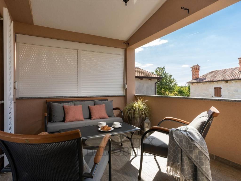 U mirnom i zelenilom okruženom naselju u okolici Poreča, svega 12 km od mora, smjestila se ova lijepa i funkcionalna kuća u nizu, idealna za obiteljski život ili mirno utočište izvan gradske vreve.