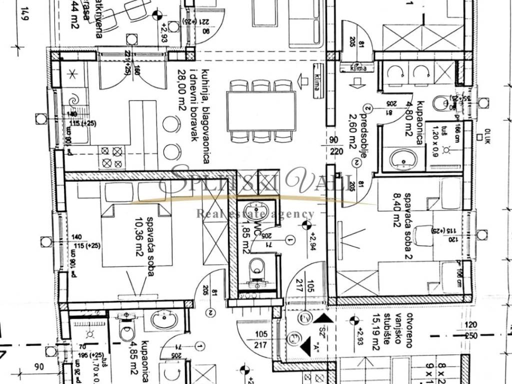 Posredujemo u prodaji jednosobnog stana površine 38m2 koji se nalazi u prizemlju novogradnje u Strožancu. Stan ima terasu i pogled prema zapadu, prema Splitu/Stobreču. Opremljen je protupožarnim i protuprovalnim blindo vratima, talijanskom keramikom s podnim grijanjem te kvalitetnim hrastovim parketom u sobi i dnevnom dijelu. Stolarija je šestokomorna, s troslojnim staklom i električnim roletama. Cijena vanjskog parkirnog mjesta iznosi 15.000 eura te garažnog parkirnog mjesta 30.000 eura. U ponudi ima više jednosobnih i dvosobnih stanova, a cijene po m2 su ovisno o katu i orijentaciji. Očekivani završetak radova je 2.mjesec 2026. Kupac plaća posredničku naknadu. Za više informacija molimo Vas nazovite na broj 0915002178 - Ana ili 0993202222 - Antea. Razgled nekretnine moguć je isključivo uz potpisani Ugovor o posredovanju, a što je u skladu sa Zakonom o zaštiti podataka i Zakonom o posredovanju i prometu nekretninama.