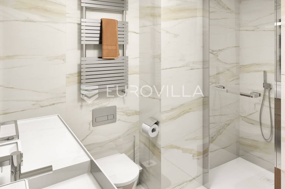 Centar, novogradnja, uređen četverosoban stan zatvorene površine 101,10 m2 na prvom katu s liftom novije građene zgrade.