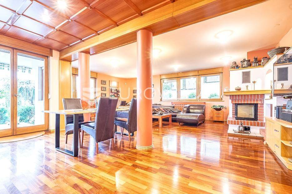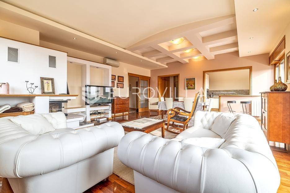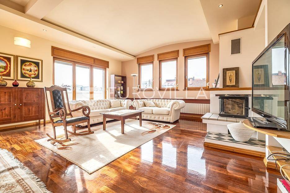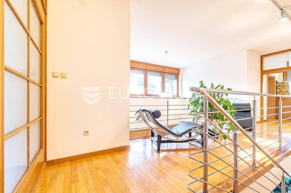 Pantovčak, prekrasna obiteljska vila 850m2 smještena na zemljištu 950m2. Nalazi se na izuzetno mirnoj mikrolokaciji, sa prekrasnim pogledom na zelenilo i grad. U neposrednoj blizini javnog prijevoza, škole i vrtića te svih ostalih bitnijih sadržaja na Britanskom trgu ili centru grada. Vila je sagrađena 2008 god. Izuzetno kvalitetna gradnja, korišteni najbolji materijali. Fasada STO, vanjska stolarija drvo (hrast) sa dvoslojnim staklom, grijači sakupnog žlijeba, grijači stepenica i rampe za automobil, grijanje plin (radijatori), klima kanalna sa 3 vanjske jedinice), žlijeb za prljavi veš, parket egzota, jasen, hrast, kamen, namještaj po mjeri i dizajnerski namještaj, videonadzor (7 kamera), alarm, 3 kamina, bazen prelivni sa 4 reflektora, mlaznicama i pripremom za protustrujno plivanje, vanjska kućica sa roštiljem i krušnom peći, vanjski tuš i toalet. Razvedena u četiri etaže. Razizemlje: garaža za 2 automobila, vešeraj s toaletom, kotlovnica, sauna, kupaonica, dnevni boravak s kuhinjom koji izlazi na natkrivenu terasu i vanjski bazen. Prizemlje: ulazni hall garderoba i wc, open space dnevni boravak s kuhinjom i blagovaonicom, terasa, radna/gostinjska soba s kupaonicom. Kat: master spavaća soba s kupaonicom, garderobom i terasom, odvojen dječji spavaći dio sa 3 spavaće sobe i kupaonicom. 2 kat: odvojen komforan trosoban stan 185m2 sa velikom terasom i panoramskim pogledom na grad. Ovaj stan ima odvojena brojila plina i struje. Ostale informacije na upit.