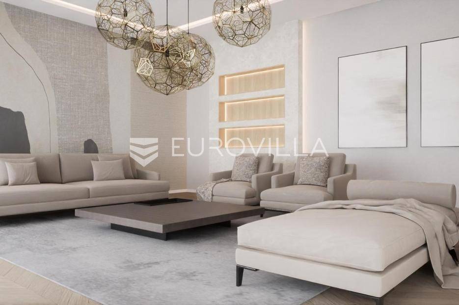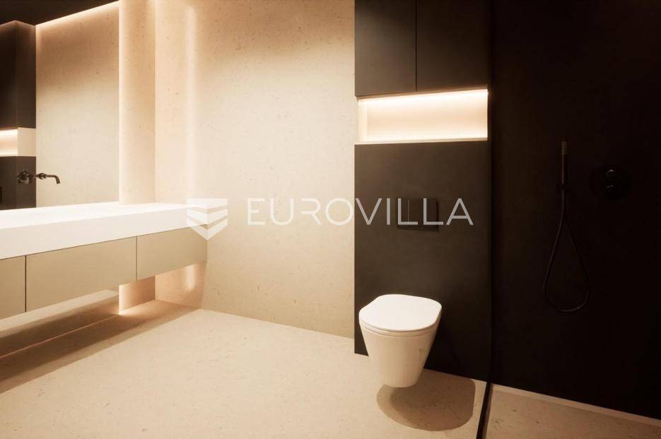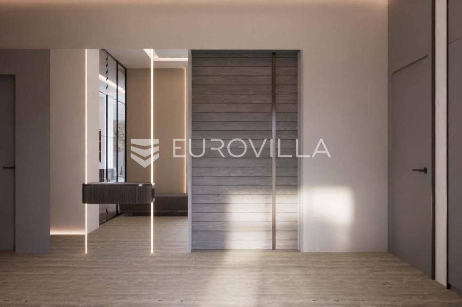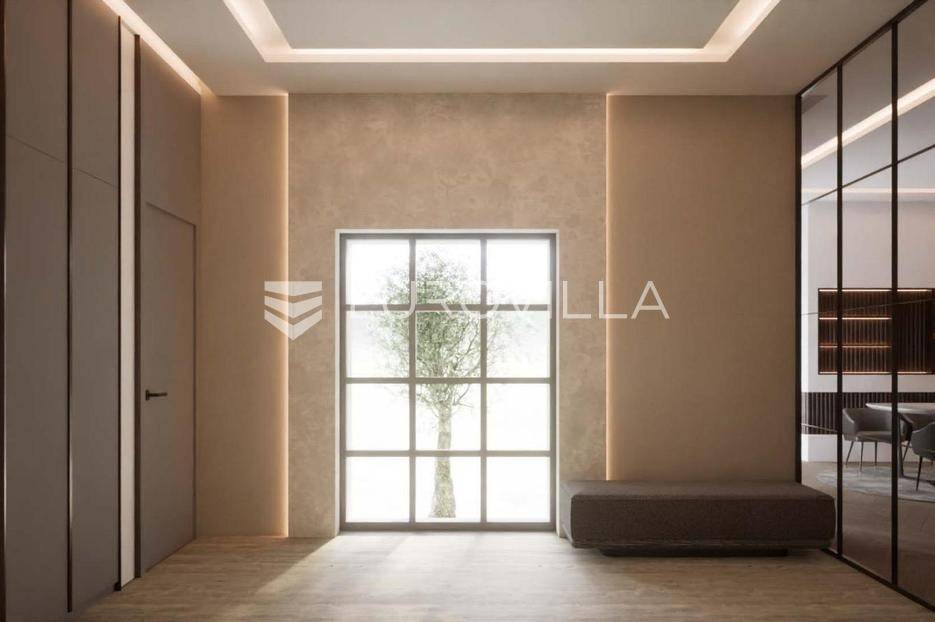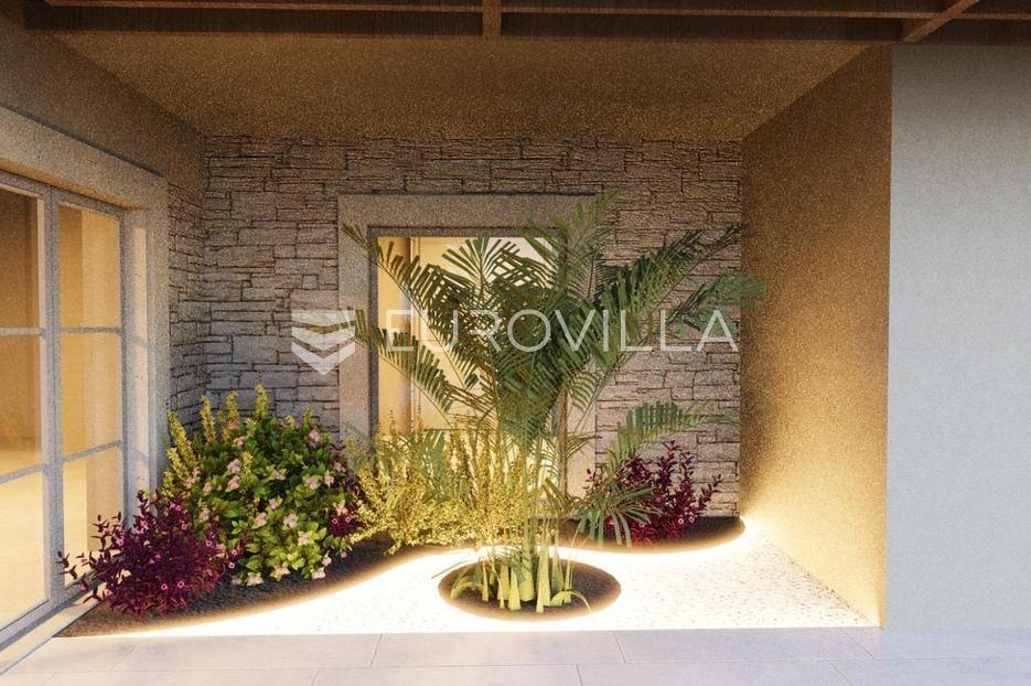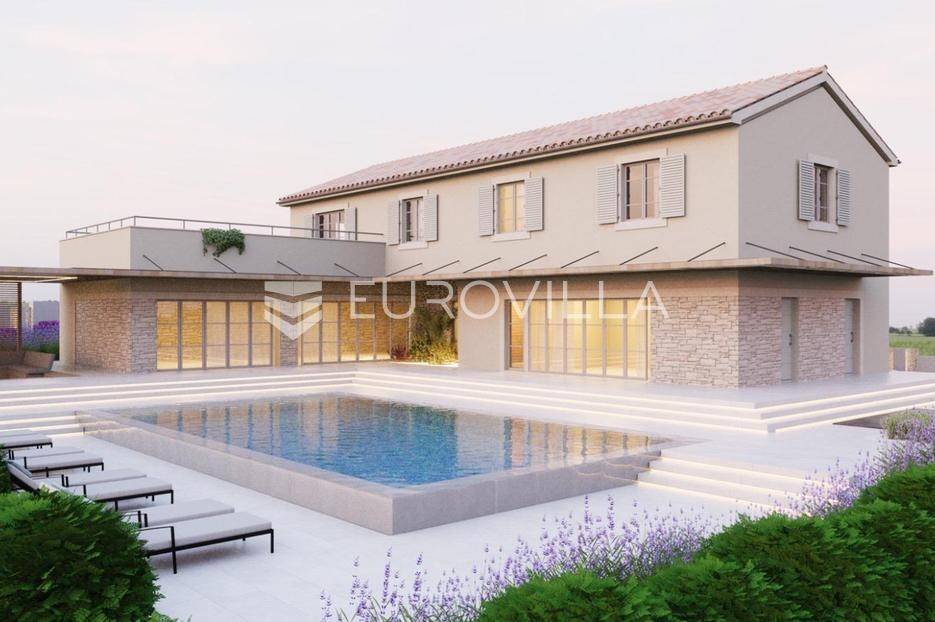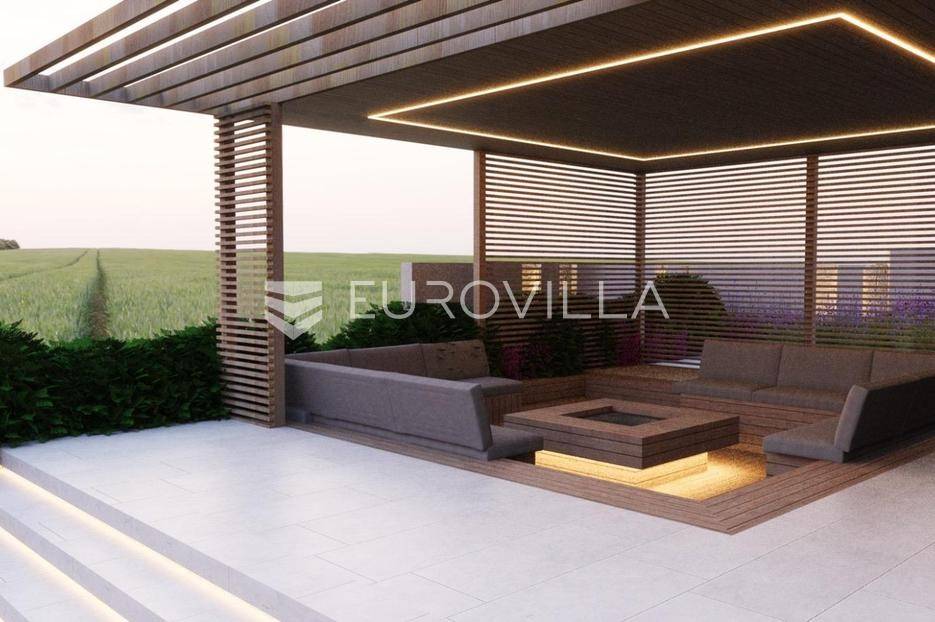 Ova luksuzno dizajnirana vila za odmor svojih vrhunskim dizajnom ostavit će Vas bez dana. Smještena na parceli od čak 1211 m2 izgradit će se vila od 290 m2 neto stambene površine. Ulazom u vilu nalazi se prostrani ulazni prostor koji pruža pristup prizemlju i stubištu koje vodi na kat. U prizemlju se smjestio veliki dnevni boravak s visokim stropovima i prozorima koji pružaju prekrasan pogled na vrt što stvara svijetlu i prozračnu atmosferu. Dnevni boravak povezan je s kuhinjom i prostranom blagovaonicom. Blagovaonica je odijeljena od boravka kaminom na bioetanol koji stvara posebnu atmosferu za vrijeme zimskih mjeseci. U prizemlju se nalazi dodatni toalet za goste.Unutarnje stubište vodi nas na kat gdje su se smjestile četiri spavaće sobe svaka sa svojom kupaonicom.Posebna značajka vile je njezin orijentir prema vrtu, koji sadrži dodatne sadržaje kao što su sauna, vanjska ljetna kuhinja s plinskim roštiljem, prostori za sjedenje u vrtu te grijani bazen.Vrt oko vile predstavlja pravu oazu mira i opuštanja. U središtu vrta smješten je prostrani bazen okružen
