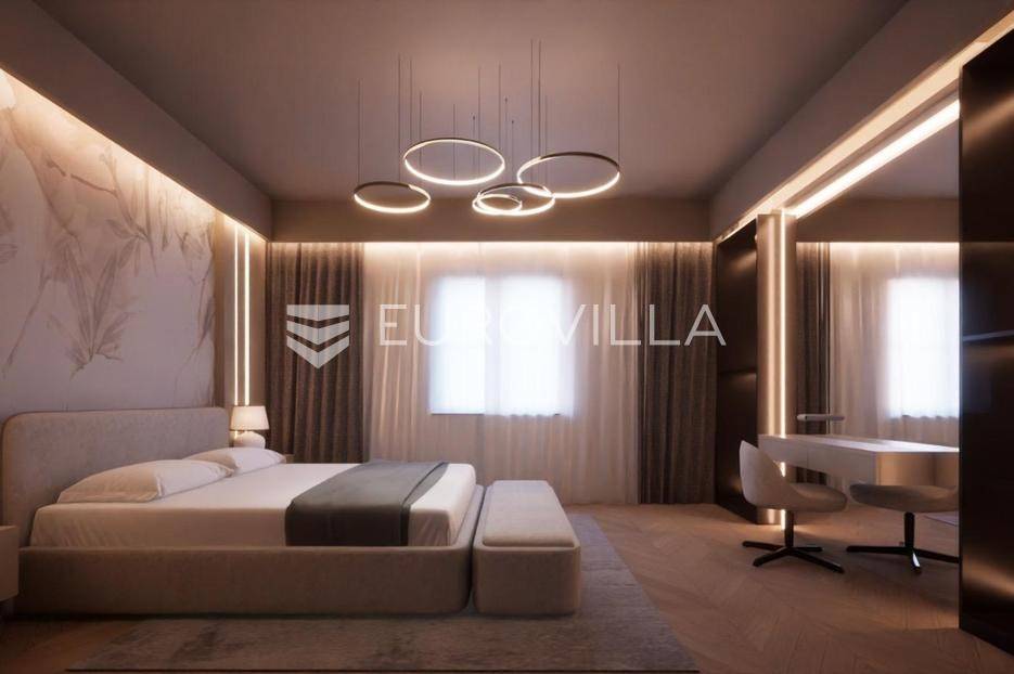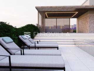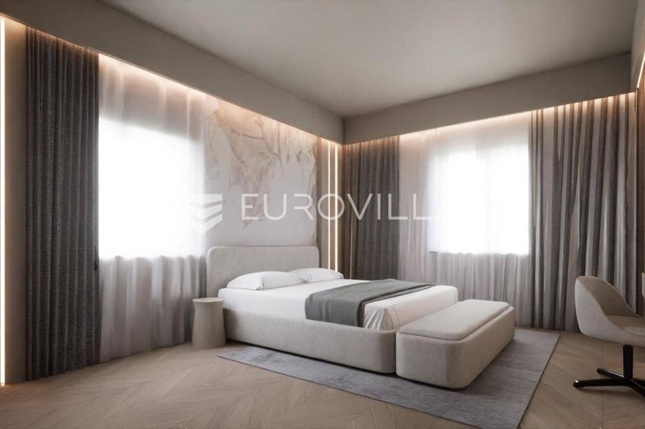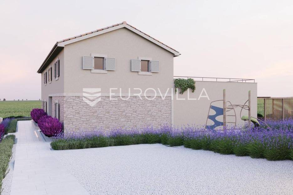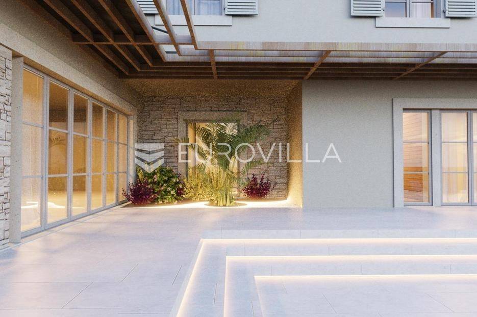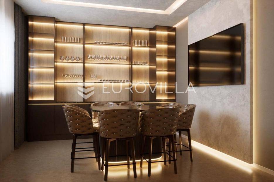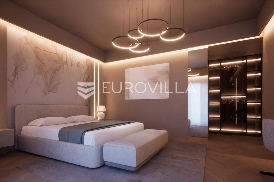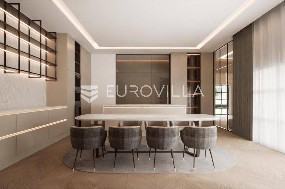Ova luksuzno dizajnirana vila za odmor svojih vrhunskim dizajnom ostavit će Vas bez dana. Smještena na parceli od čak 1211 m2 izgradit će se vila od 290 m2 neto stambene površine. Ulazom u vilu nalazi se prostrani ulazni prostor koji pruža pristup prizemlju i stubištu koje vodi na kat. U prizemlju se smjestio veliki dnevni boravak s visokim stropovima i prozorima koji pružaju prekrasan pogled na vrt što stvara svijetlu i prozračnu atmosferu. Dnevni boravak povezan je s kuhinjom i prostranom blagovaonicom. Blagovaonica je odijeljena od boravka kaminom na bioetanol koji stvara posebnu atmosferu za vrijeme zimskih mjeseci. U prizemlju se nalazi dodatni toalet za goste.Unutarnje stubište vodi nas na kat gdje su se smjestile četiri spavaće sobe svaka sa svojom kupaonicom.Posebna značajka vile je njezin orijentir prema vrtu, koji sadrži dodatne sadržaje kao što su sauna, vanjska ljetna kuhinja s plinskim roštiljem, prostori za sjedenje u vrtu te grijani bazen.Vrt oko vile predstavlja pravu oazu mira i opuštanja. U središtu vrta smješten je prostrani bazen okružen