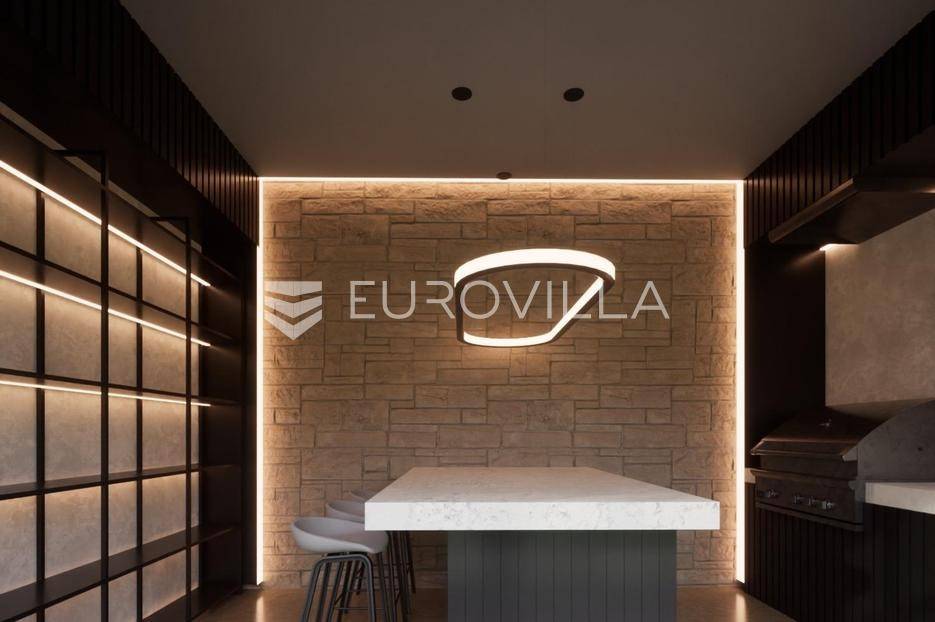 ležaljkama i suncobranima, idealan za osvježenje tijekom vrućih ljetnih dana. Pored bazena nalazi se vanjska ljetna kuhinja opremljena plinskim roštiljem i prostorom za pripremu hrane, što omogućava budućem vlasniku da uživaju u kuhanju na otvorenom. Tu će biti i udobni prostori za sjedenje za opuštanje i uživanje u obrocima na svježem zraku.
