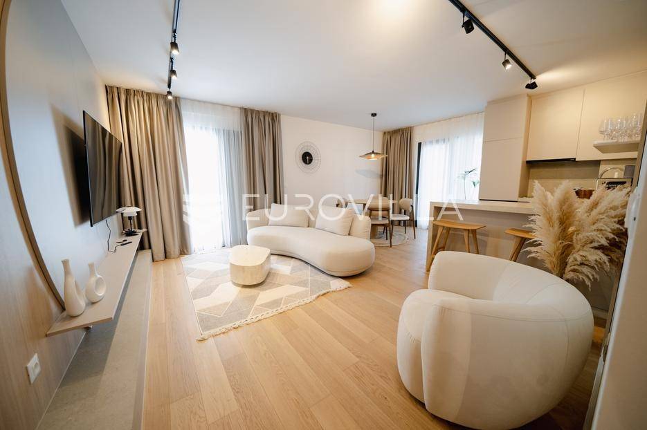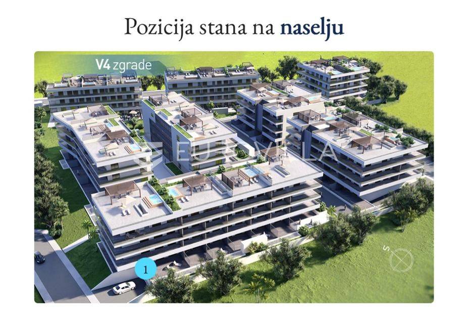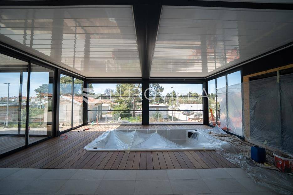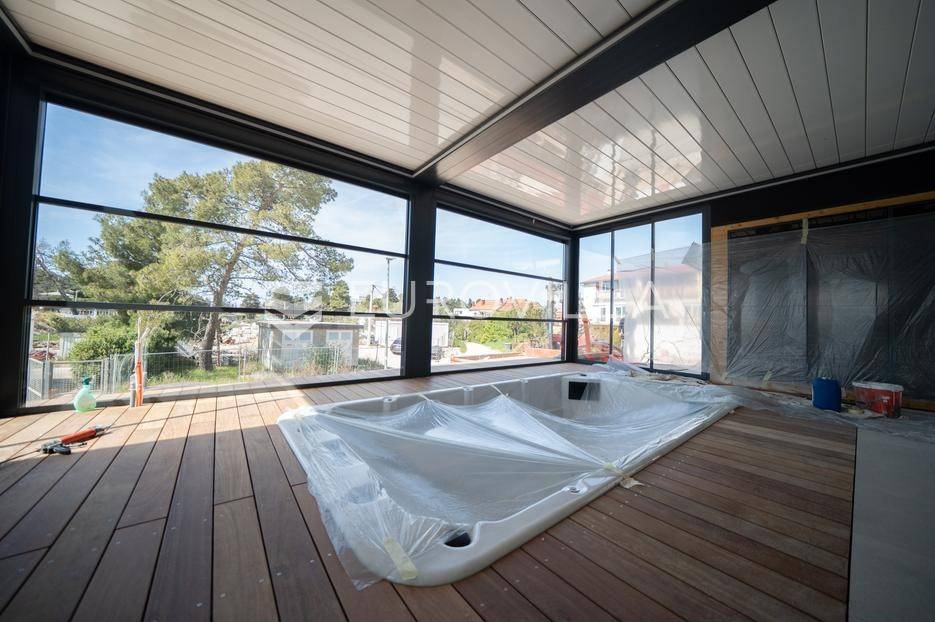 Zadar, Borik, luksuzno namješten i opremljen dvosobni stan s prostranom terasom, bazenom i saunom