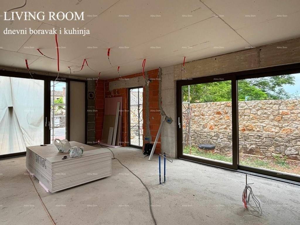 Prodaje se kuća u mirnom dijelu naselja u okolici Bala, ukupne površine 176 m², smještena na uređenoj parceli od 502 m². Idealna lokacija na rubu naselja pruža privatnost, mir i pogled na prirodu.Kuća se gradi na dvije etaže – prizemlje i kat – s planiranim završetkom gradnje i mogućnošću useljenja krajem 2025. godine.Raspored prostorija:Prizemlje:Ulazni hodnikProstrani dnevni boravak otvorenog koncepta s kuhinjom i blagovaonicomVelike staklene stijene koje osiguravaju obilje dnevne svjetlosti i direktan izlaz na okućnicuWC za gosteVešerajLuksuzna wellness zona s finskom saunom i popratnim sadržajima.Kat:Dvije prostrane spavaće sobe, svaka s vlastitom kupaonicom. Staklene stijene u sobama za maksimalno prirodno osvjetljenje.Jedna soba s direktnim izlazom na terasu s pogledom na zelenilo.Tehničke karakteristike:Centralno podno grijanje pomoću dizalice topline (zrak/voda), s termostatom u svakoj prostoriji.Četiri ugradbena klima uređaja za hlađenje.Bazen površine 37 m².Uređena okućnica s dekorativnim biljem.Ova kuća je savršen izbor za one koji traže kombinaciju moderne udobnosti, privatnosti i prirodnog okruženja, bilo za stanovanje, odmor ili investiciju u turističku namjenu.INFO:Azra +385 91 611 5706 +385 98 420 885 azra@almadominvest.com