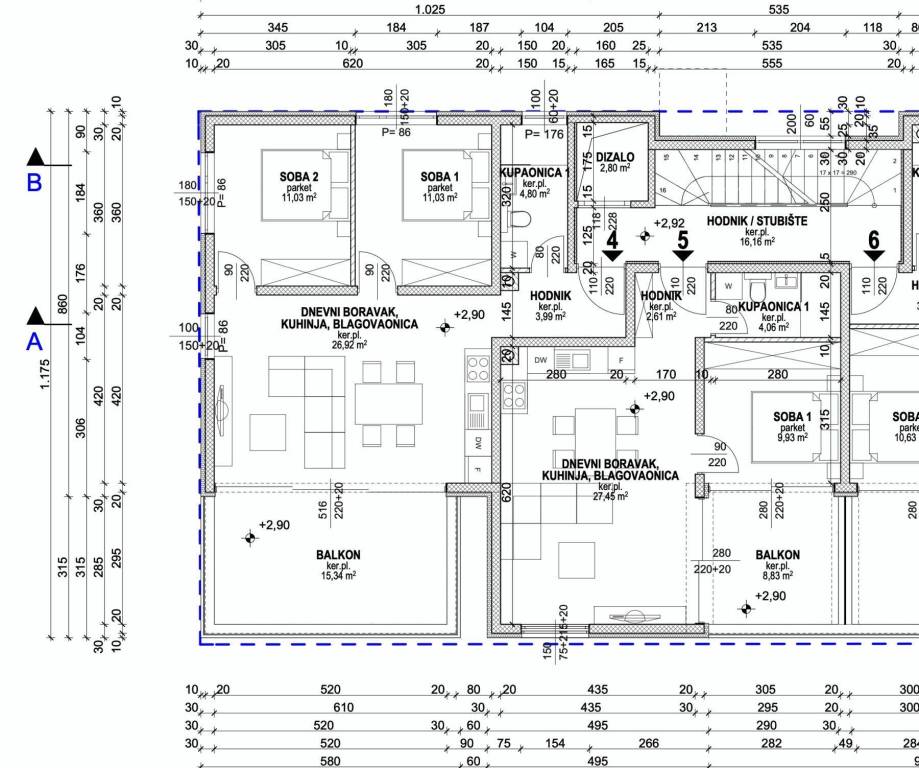 - Stanovi na 1. i 2. katu s prostranim natkrivenim balkonima – savršeni za uživanje u pogledu i mediteranskoj atmosferi