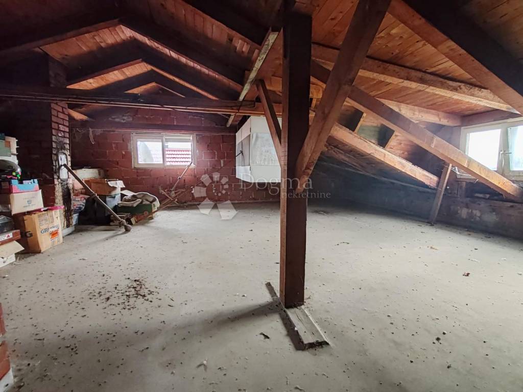 Iznad drugog kata smješteno je potkrovlje, odnosno tavan, koji pruža dodatan potencijal za uređenje u stambeni ili drugi korisni prostor. U dvorištu kuće nalazi se garaža iz koje se ulazi u još jedan podrum, što dodatno povećava mogućnosti skladištenja ili prilagodbe prostora.