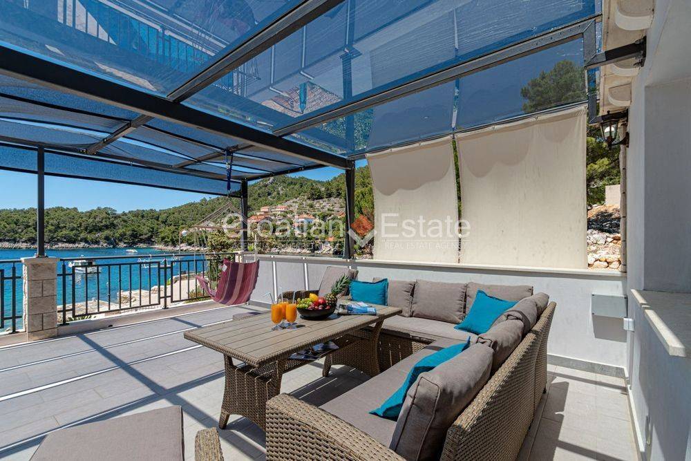 Otok Korčula – Vila direktno uz more, s bazenom, na prodaju Ova vila nalazi se na jedinstvenoj lokaciji, u malom mjestu na južnoj strani otoka Korčule. Udaljena je samo nekoliko koraka od kristalno čistog mora, male ribarske uvale i okružena je obiljem netaknute prirode. Najbliža plaža udaljena je skromnih 10m od vile. Sve ovo čini vilu savršenim izborom za ljubitelje mora koji traže opuštanje, udobnost i mir u prirodnom i spokojnom mediteranskom ambijentu. Vila se nalazi na parceli površine 690m2 i ima 460m2 stambene površine koja se prostire na tri etaže. Interijer sadrži: - Sedam spavaćih soba - Tri kupaonice s WC-om - Kupaonicu bez WC-a - Dva dnevna boravka s kuhinjom i blagovaonicom - Sobu za zabavu Okućnica sadrži: - Bazen - Roštilj - Prostor za blagovanje - Parkiralište za tri automobila Vila je kompletno opremljena, namještena i klimatizirana. S gornjih etaža pruža se prekrasan pogled na more i obližnju obalu s obilnom mediteranskom vegetacijom. Soba za zabavu uključuje biljar i ima poseban dašak prikladne morske estetike. Interijer vile je svijetao i prostran. Neke od kupaonica imaju elegantne i praktične pločice velikog formata koje sežu sve do stropa. Eksterijer se može pohvaliti kamenom ogradom, kamenim pločama i djelomično kamenom fasadom. Dodatna ključna značajka vile je vez za brod. Više o lokaciji: Korčula je zeleni otok, naseljen od prapovijesti, s tragovima antičkih artefakata koji su pronađeni oko otoka. Grad Korčula poznat je kao drevni grad opasan očuvanim zidinama. Ima oblik poluotoka s izuzetnim uskim stazama u obliku riblje kosti. Nadalje, “medicinski turizam” za ovaj otok ima posebno značenje zbog blage klime, čistog zraka, kristalno čistog mora i ljekovitog bilja koje se može pronaći na nekoliko mjesta na otoku. Korčula danas predstavlja jedinstven spoj prekrasne prirode, tisućljetne kulturne tradicije, i povijesti, i modernog turizma. Bezbrojne plaže i uvale, luksuzni hoteli i vile, stoljetni maslinici i vinogradi nešto su što ovaj otok čini uistinu posebnim.