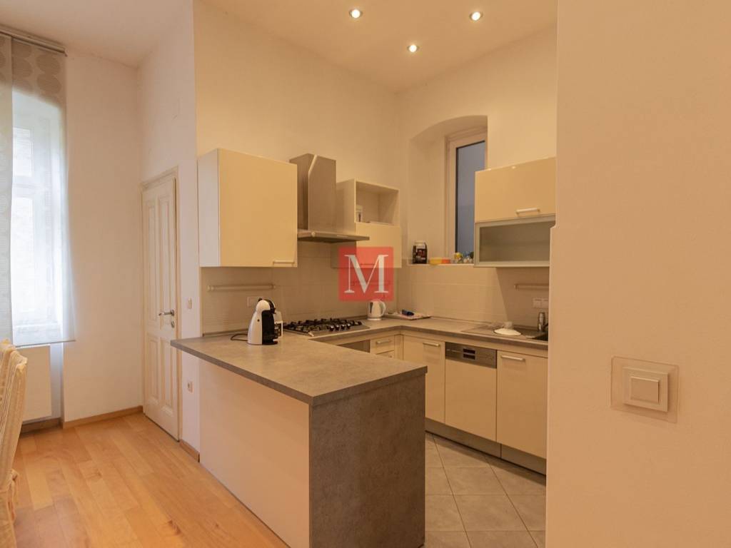Opremljen je DanKüchen kuhinjom po mjeri, Miele aparatima, Villeroy & Boch sanitarijama i novim parketima. Posebna prednost je walk-in garderoba duga 5 metara, koja osigurava urednost i profinjen izgled prostora.