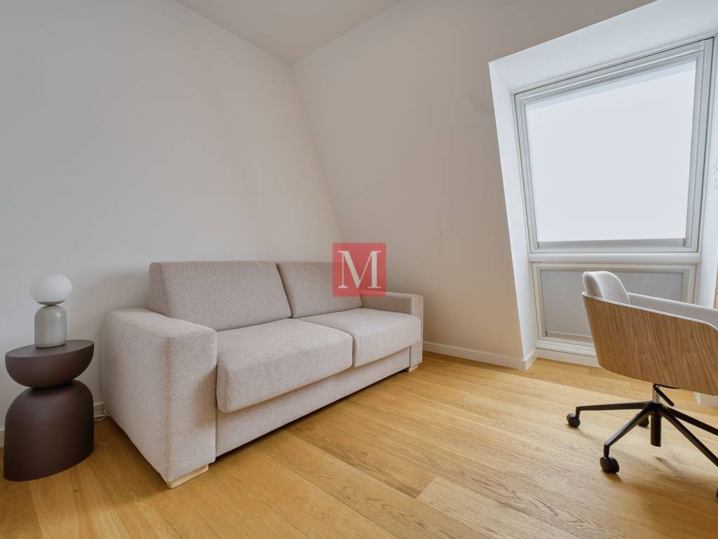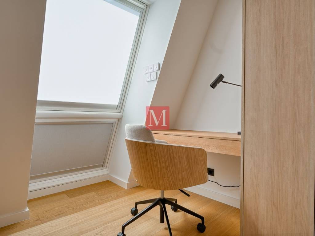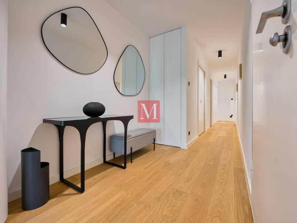 Sastoji se od ulaznog hodnika s ugradbenim ormarima, open-space dnevnog boravka s kuhinjom i blagavaonicom, garderobe, vešeraja, zasebnog WC-a, hodnika s ugradbenim ormarima u niši, gospodarske sobe s bojlerom i usisivačem, kupaonice s kadom, master spavaće sobe s vlastitim walk-in ormarom i kupaonicom (tuš), dvije dodatne spavaće sobe, gostinjske sobe koja ujedno može služiti i kao radna soba, te loggie s prekrasnim pogledom na Zagrebačku katedralu i park Ribnjak.