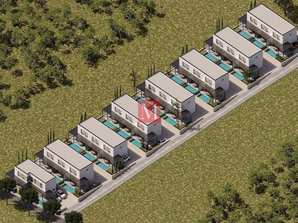 prizemlje: ulazni hodnik, spremište, kupaonica, openspace dnevni broravak s kuhinjom i blagavaonicom te izlaz na terasu i bazen.
