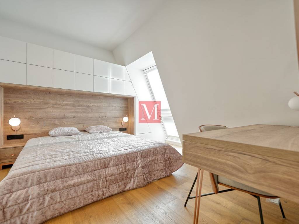 Sastoji se od ulaznog hodnika s ugradbenim ormarima, open-space dnevnog boravka s kuhinjom i blagovaonicom, master spavaće sobe s vlastitom kupaonicom i walk-in garderobom, dvije spavaće sobe, kupaonice, gospodarske sobe s perilicom i sušilicom rublja i terase s prekrasnim pogledom na Zagrebačku katedralu i park Ribnjak.