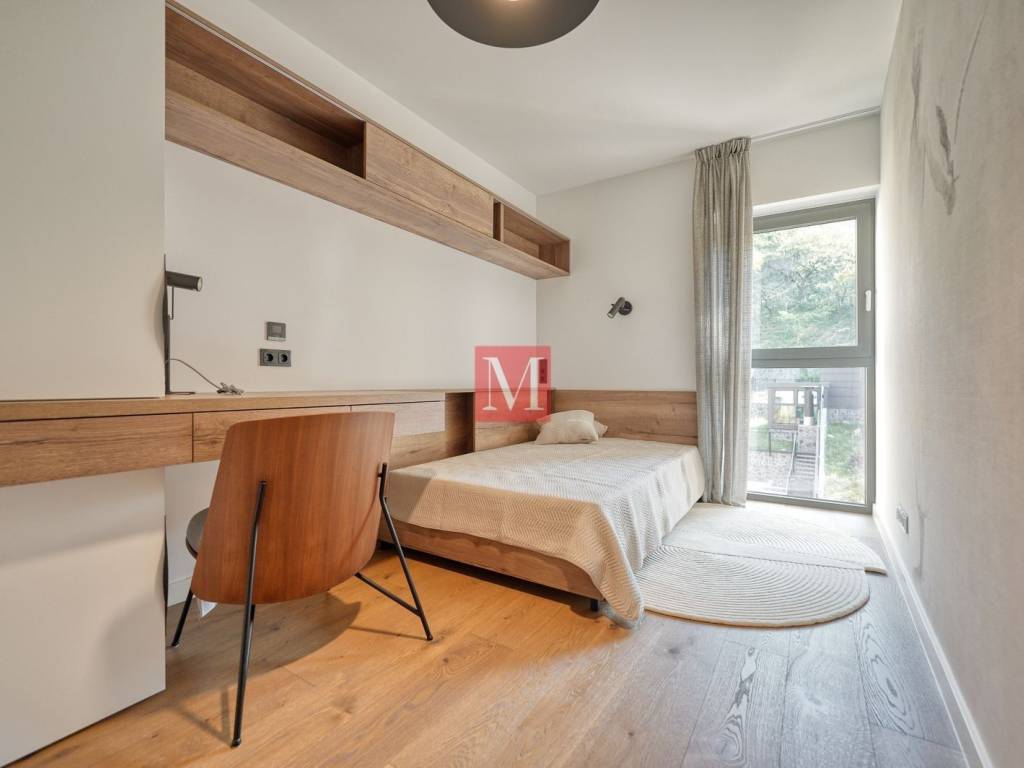 Stan je opremljen inovativnim i praktičnim rješenjima i opremom vrhunske kvalitete poznatih brendova (Miele, Prostoria, Poliform, itd.).