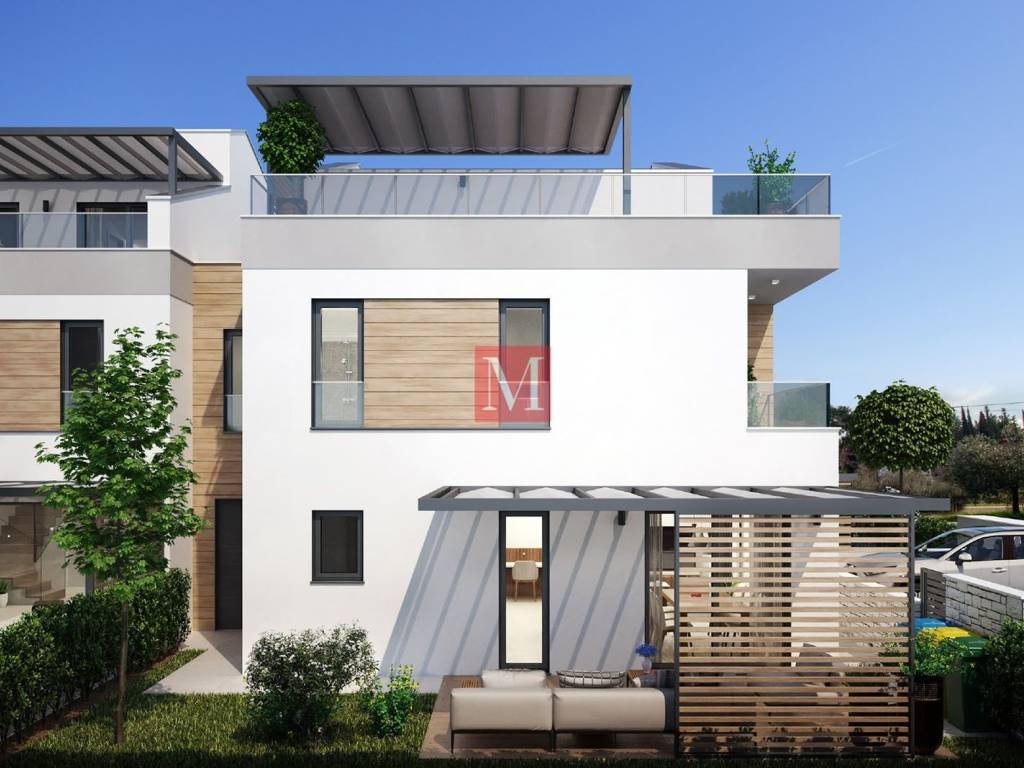 Luksuzan troetažni stan B u novogradnji s terasama, vrtom i prekrasnim panoramskim pogledom.