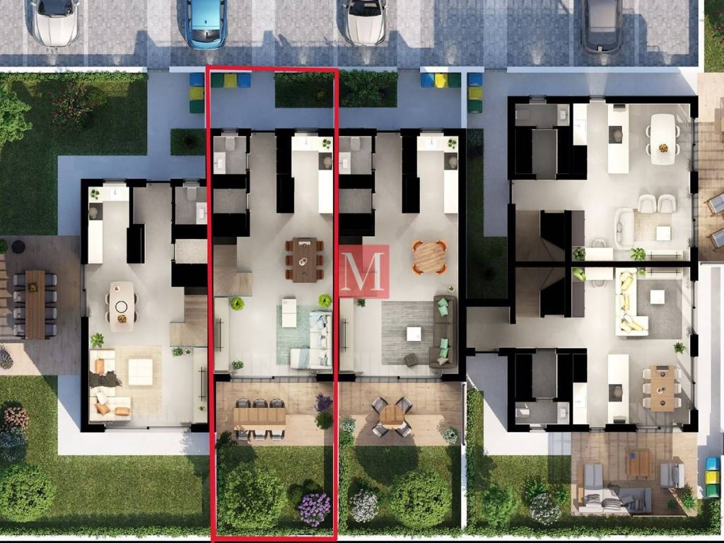 prizemlje: open space dnevni boravak s blagovaonicom i kuhinjom, gospodarska soba, toalet, natkrivena terasa i vrt