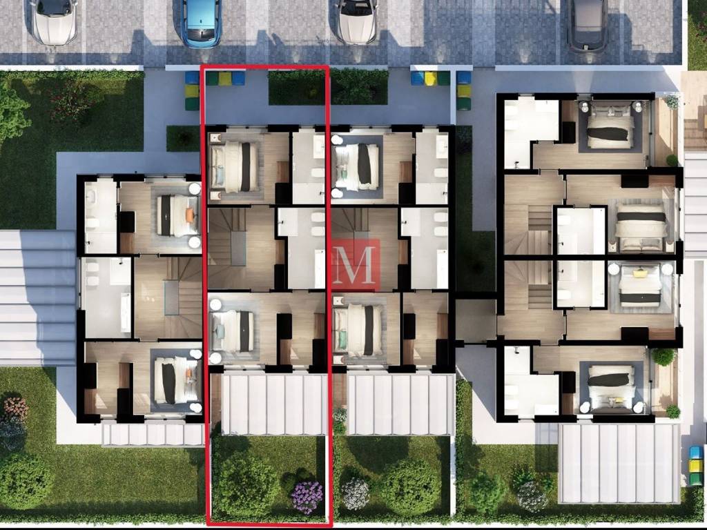 1. kat: dvije spavaće sobe, svaka sa svojom kupaonicom, od kojih jedna ima vlastitu walk-in garderobu
