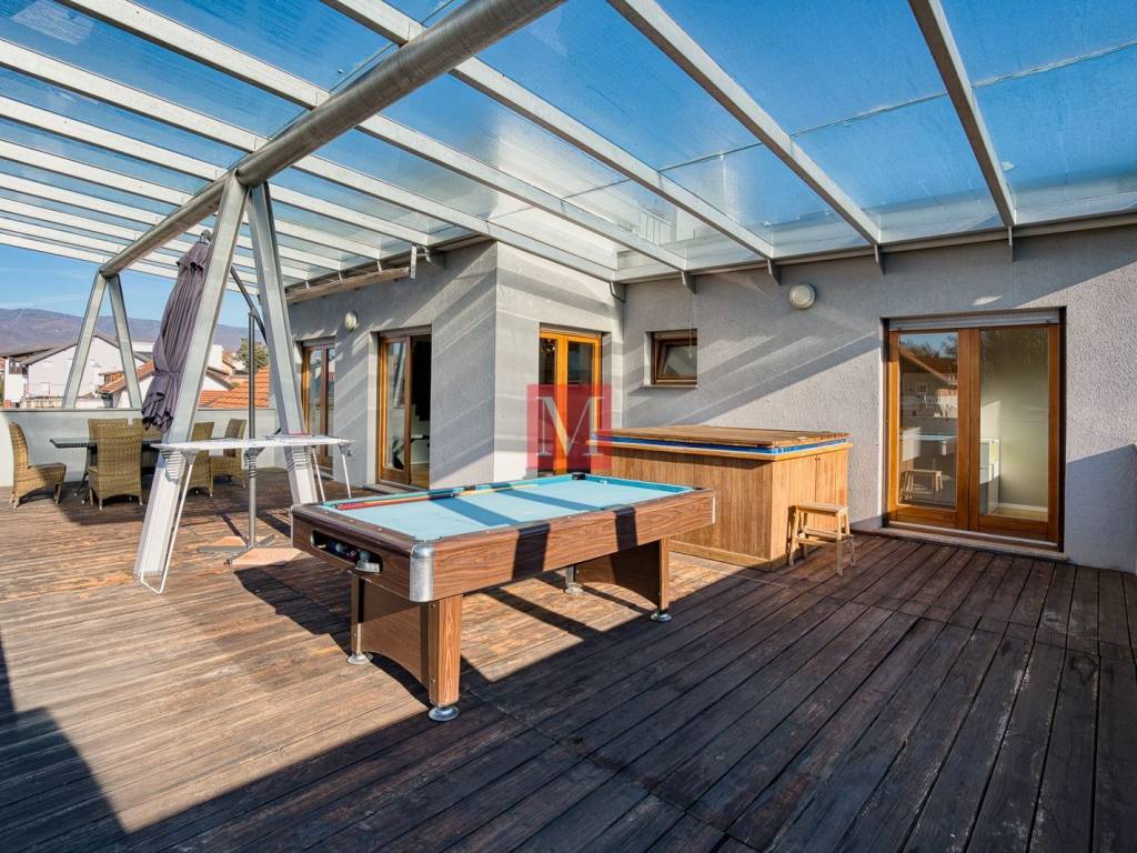 Sastoji se od ulaznog hola, kuhinje, dnevnog boravka i blagovaonice, 3 spavaće sobe, 2 kupaonice i velike terase s jacuzzijem.