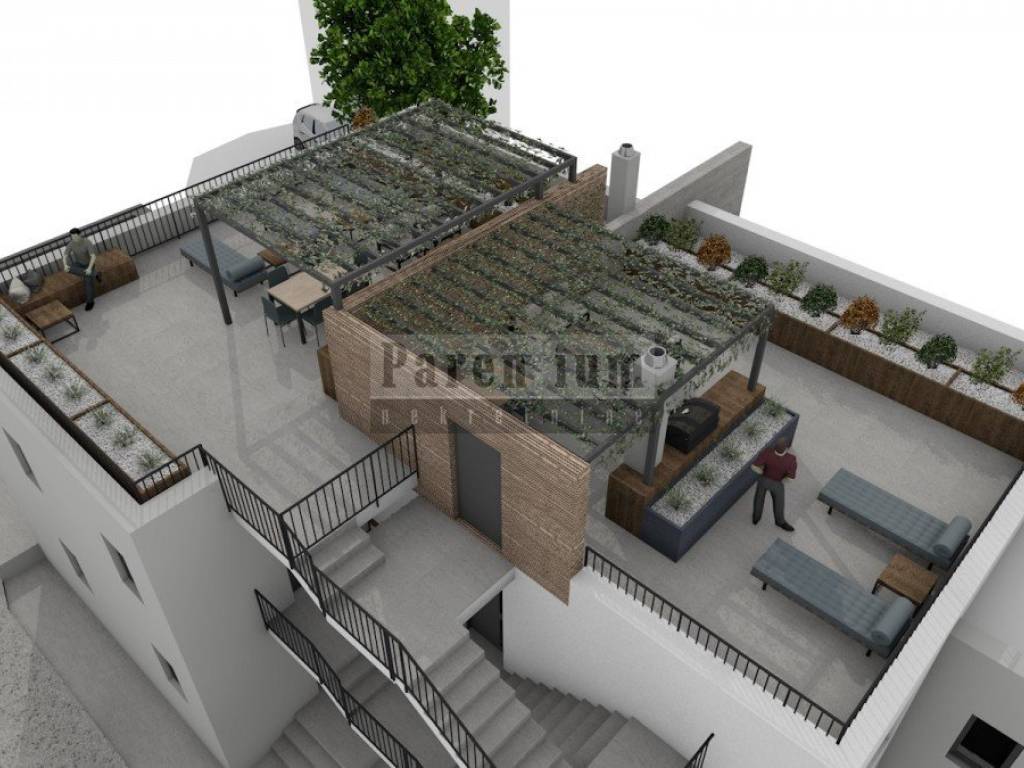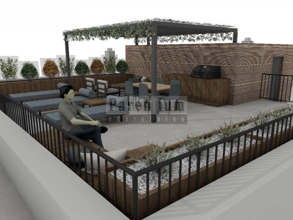 Vanjskim stepenicama, zasebnim ulazom, dolazi se na krovnu terasu sa koje se pruža prekrasan i neometan pogled na more. Krovna terasa od 55 m2, prohodnog tipa.