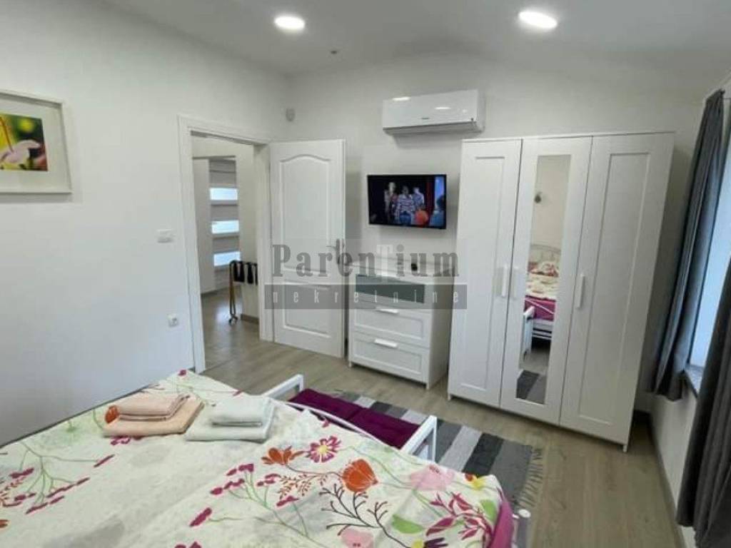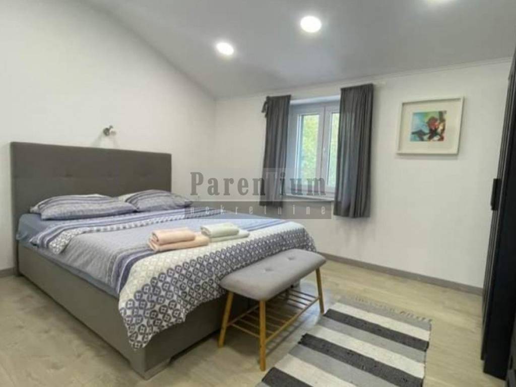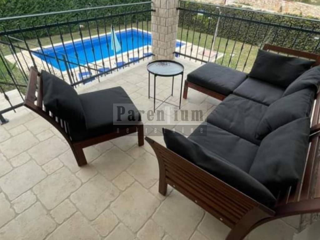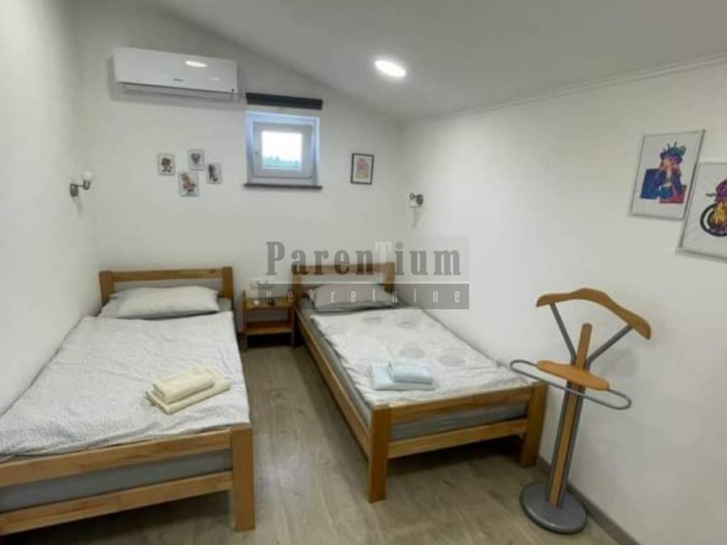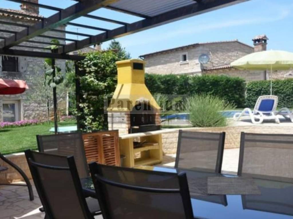 Poreč, samo 5km udaljena od centra grada i mora prodaje se ova samostojeća kamena kuća. Površine je 165m2 i smještena je na okućnici od 396m2. U prizemlju kuće nalazi se prostrani dnevni boravak, blagovaona, kuhinja, jedna spavaća soba i kupaona. Vanjskim stubištem se ide na prvi kat na kojem se nalaze još tri spavaće sobe i dvije kupaonice, velika natkrivena terasa. Svaka prostorija kuće ima klima uređaj, sobe televizor. U kući je moguće postaviti naknadno peć na pelete ili drva. Bazen je površine 32m2, i tu se nalazi još vrtna kučica, travnjak s automatskim navodnjavanjem, grill zona.