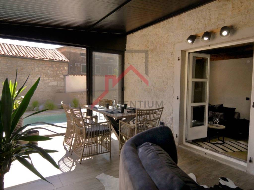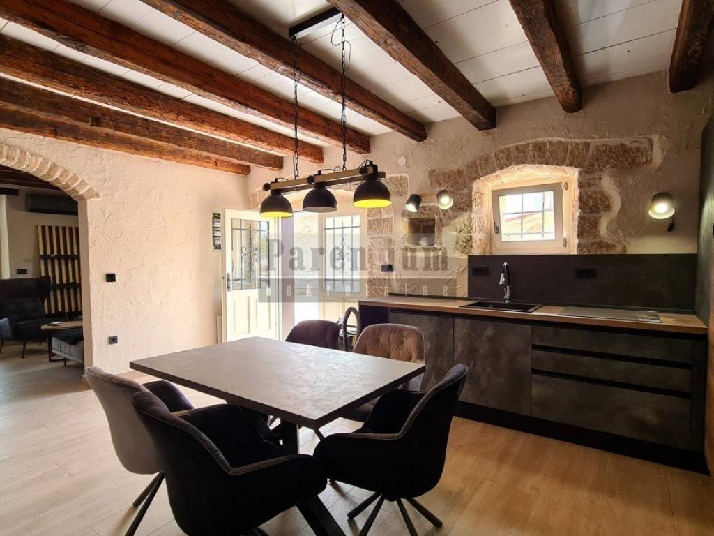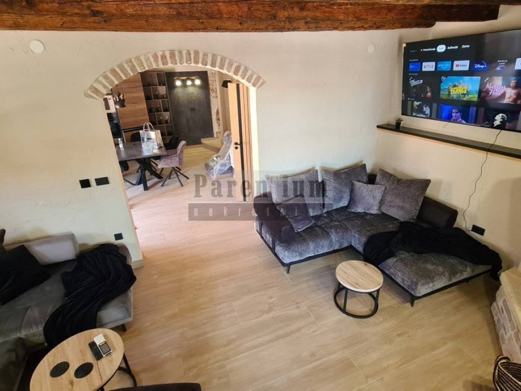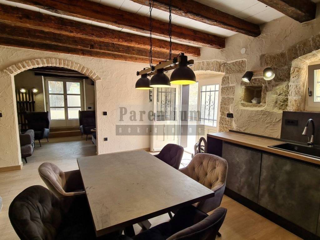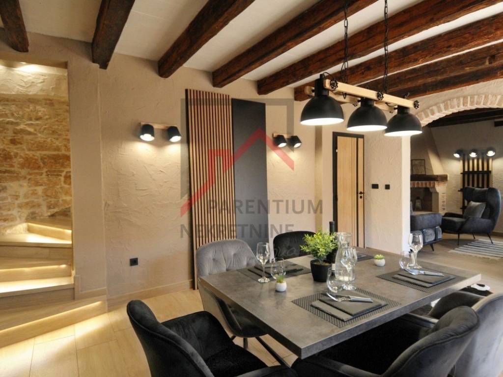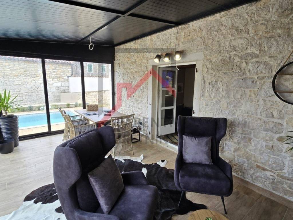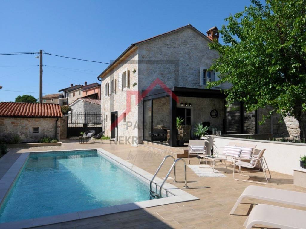 Kuća se prodaje kompletno renovirana i kompletno namještena. Spoj tradicionalne istarske kamene kuće u spoju sa modernom funkcionalnošću. U kući je postavljeno podno grijanje te 4 klima uređaja - u svakoj spavaćoj sobi te u dnevnom boravku.