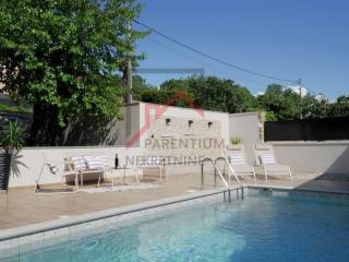 Na uređenom i ograđenom dvorištu površine 353 m2 nalazi se parking, bazen površine 24 m2 (8x3m) te pomoćna prostorija koja može služiti kao wellness, spremište ili konoba.