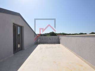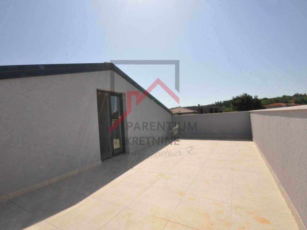 U blizini grada Poreča u zgradi s 5 stanova prodaje se ovaj trosoban stan na prvom katu s terasom. Sastoji se od kuhinje sa blagovaonom i dnevnog boravka , toaleta i spavaće sobe ,unutarnje stepenice vode nas do visokog potkrovlja gdje su smještene još dvije spavaće sobe , kupaona , galerija i prostrana terasa od 31 m2 sa otvorenim pogledom na more. Terasa je sigurno i najveći argument stana, jer na tržištu nema puno takvih nekretnina.