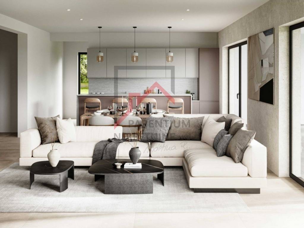 U prizemlju se nalazi veliki open space prostor koji uključuje dnevni boravak, kuhinju i blagovaonicu od čak 55 m2. Dok su u zasebnim prostorijama smješteni wellness, tehnička soba, praonica rublja i WC za goste.